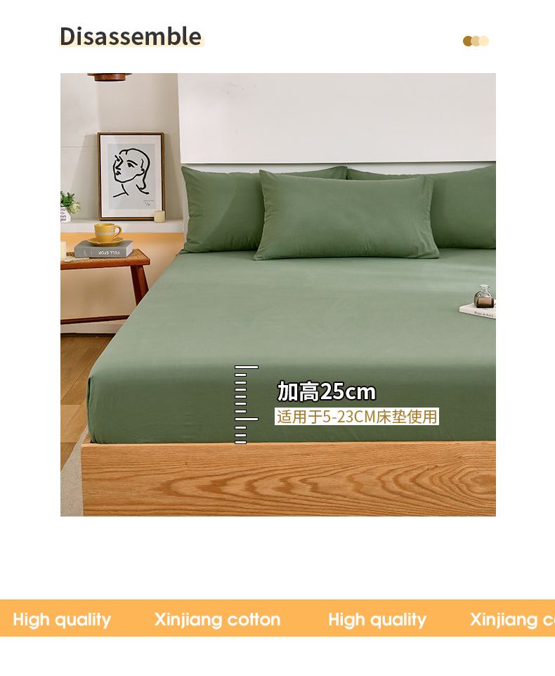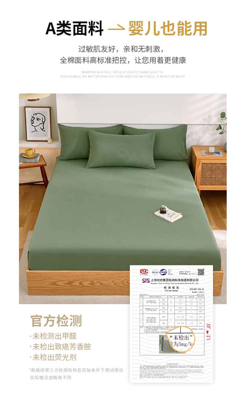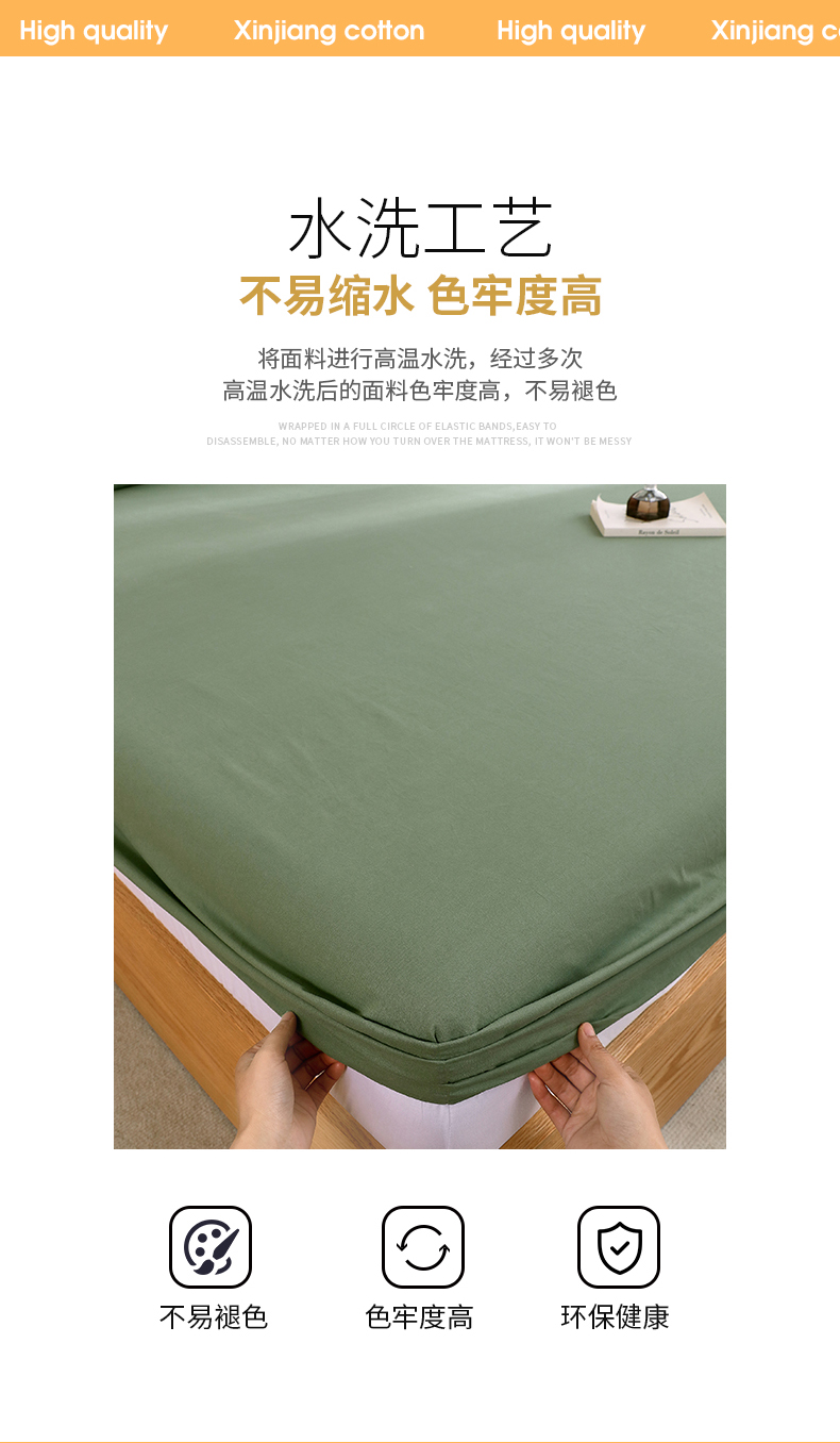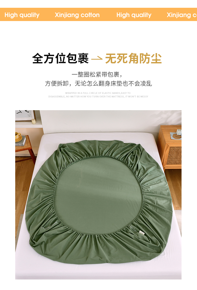 商品名称:春皖家纺 2026新款色织AB版水洗棉三件套四件套单品系列(单床笠-B版风格一) 素雅军绿