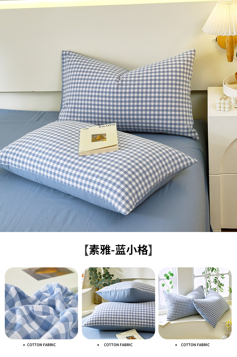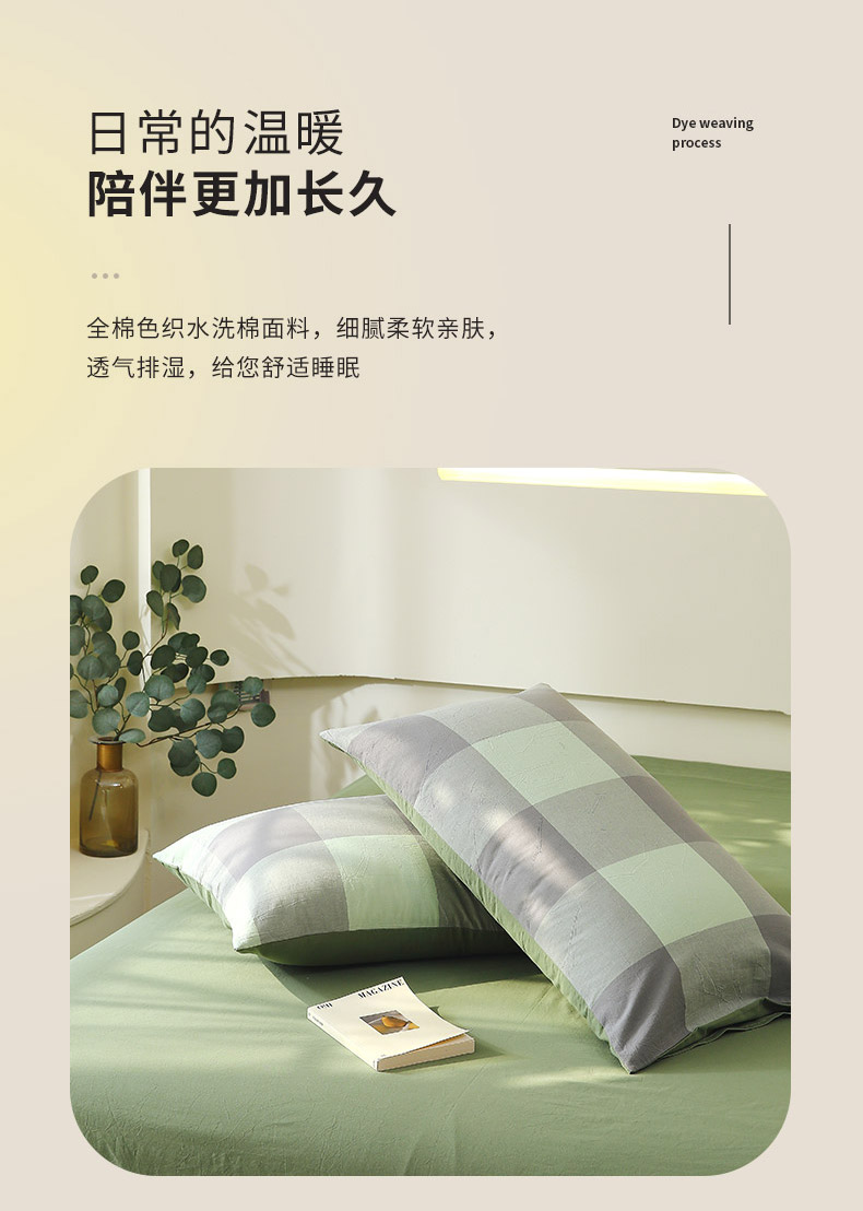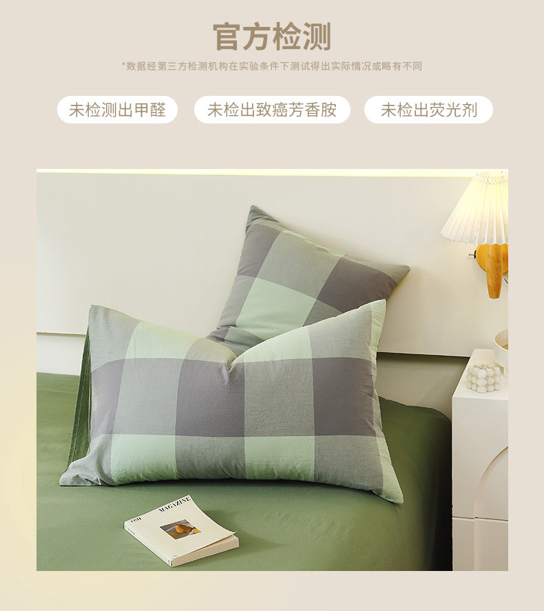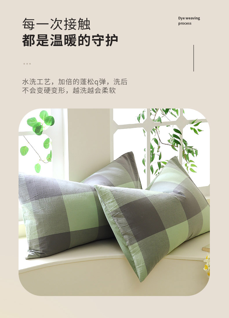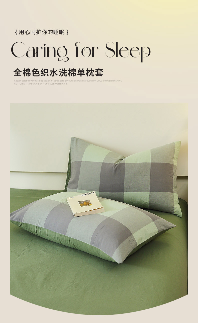 商品名称:春皖家纺 2026新款色织AB版水洗棉三件套四件套单品系列(单枕套风格一) 素雅-清格