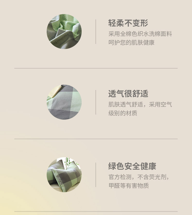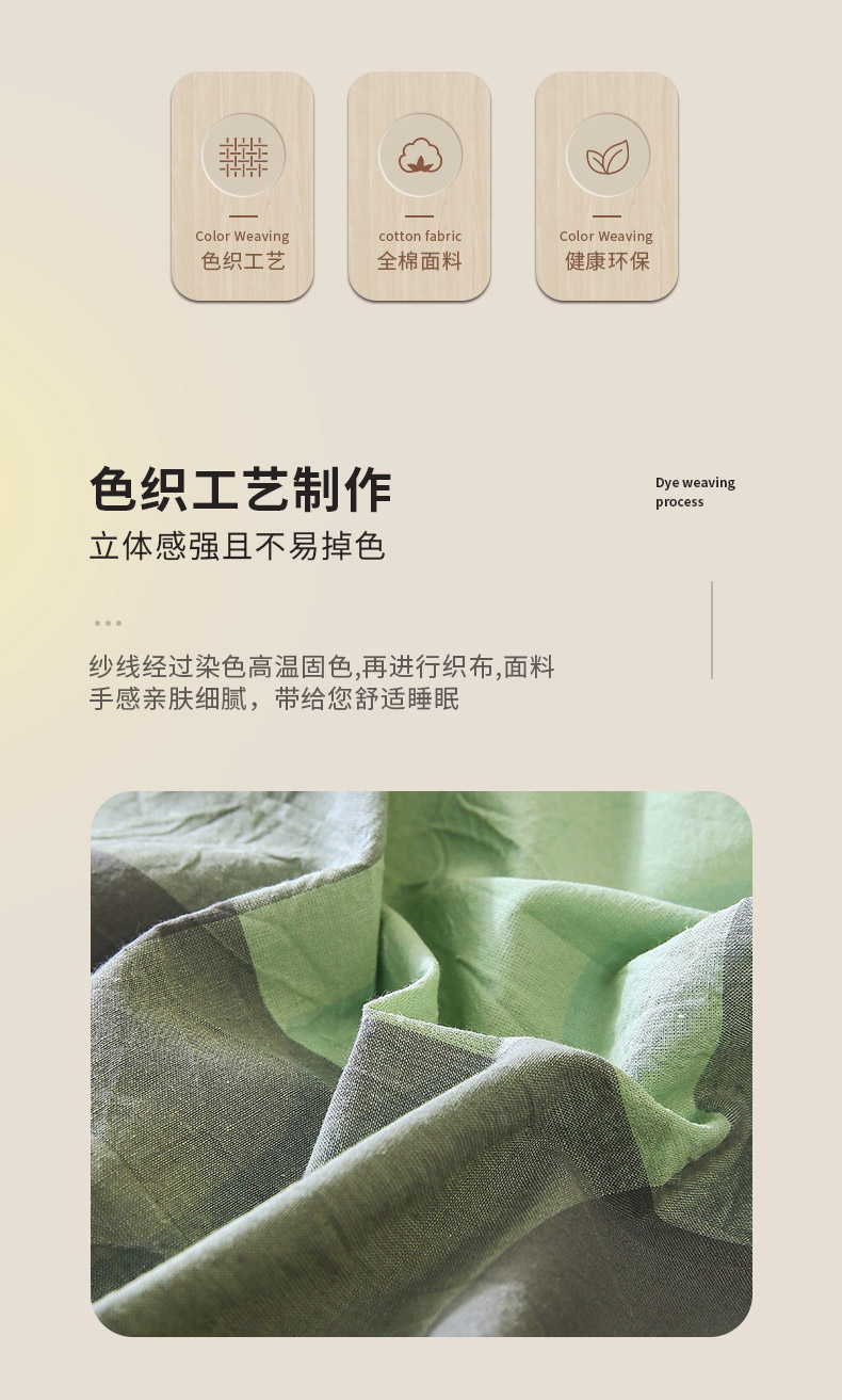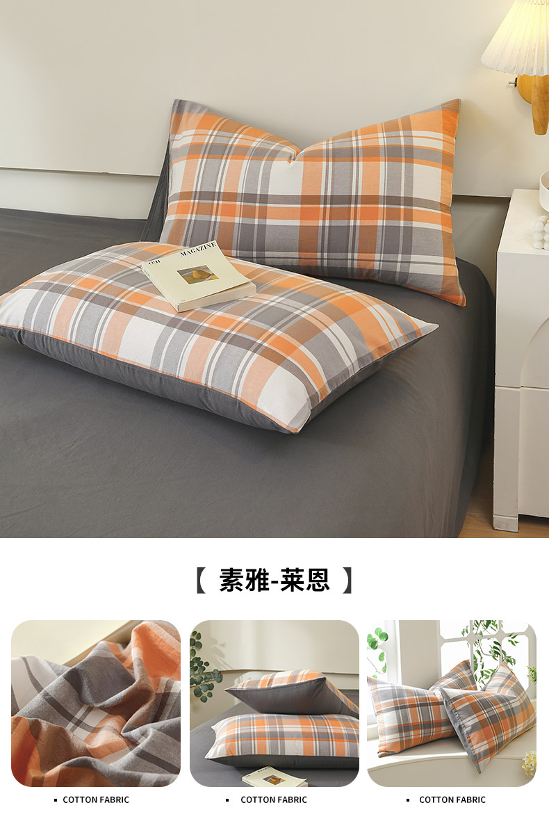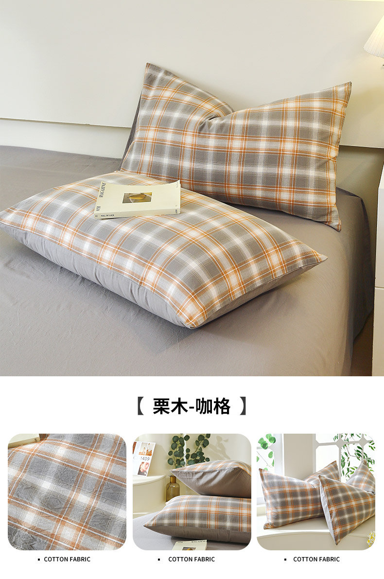 商品名称:春皖家纺 2026新款色织AB版水洗棉三件套四件套单品系列(单枕套风格一) 素雅-清格
