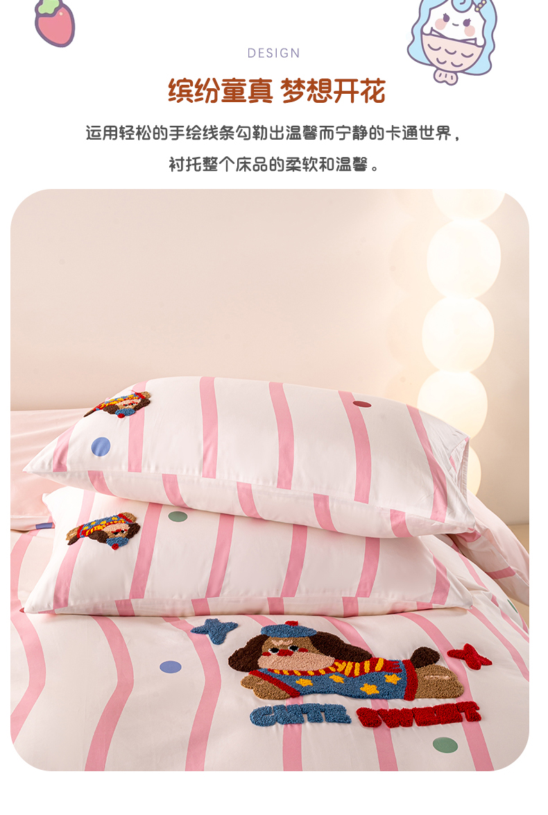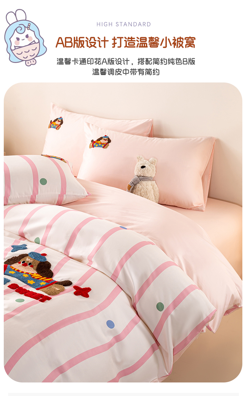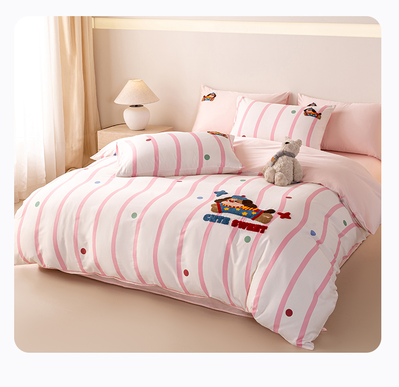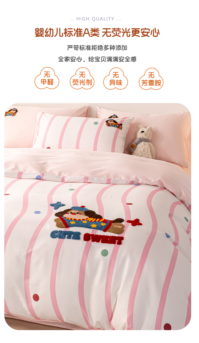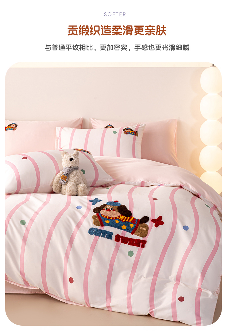 商品名称:(总)卧趣家纺 2026新款A类100Pro贡缎全棉纯棉卡通毛巾绣四件套-场景一