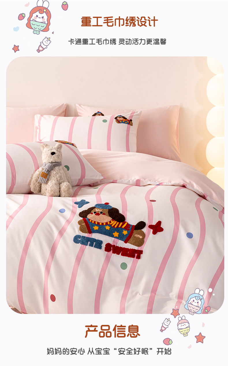 (总)卧趣家纺 2026新款A类100Pro贡缎全棉纯棉卡通毛巾绣四件套-场景一