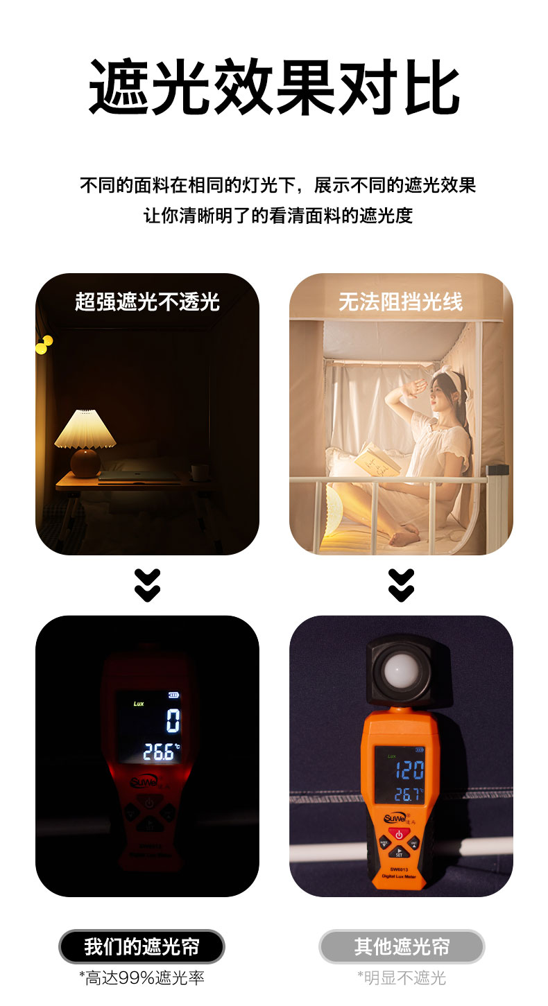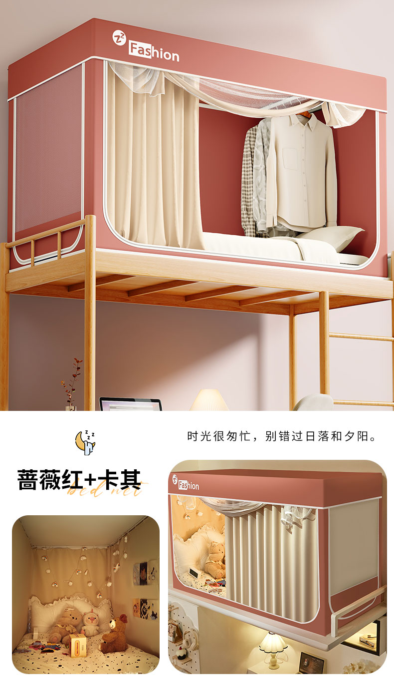 (总)壹和 2026新款加厚梭织100%物理强遮光床学生蚊帐环保透气床帘加密纱学生蚊帐