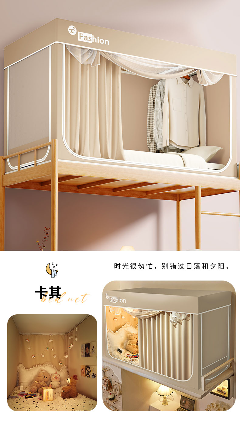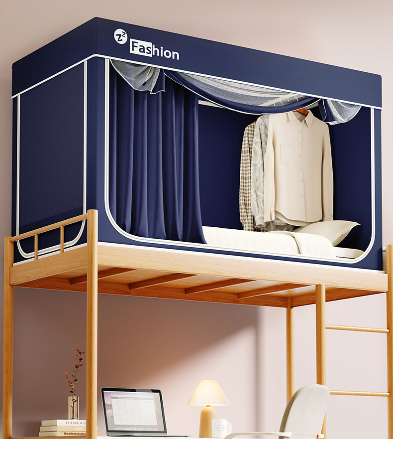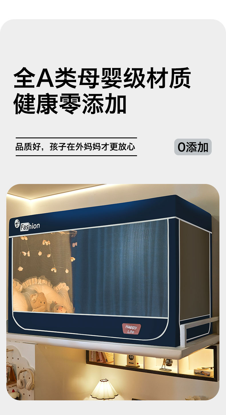 (总)壹和 2026新款纯物理无涂层无覆膜款遮光防蚊学生坐床蚊帐(场景二),苍穹蓝,大象灰,靛蓝,靛蓝拼米,优雅米