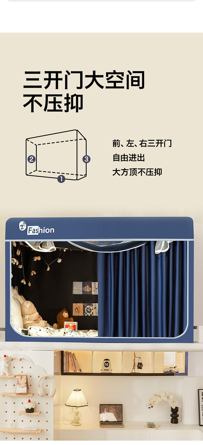 80上铺-无靠墙帘(配秒开支架)