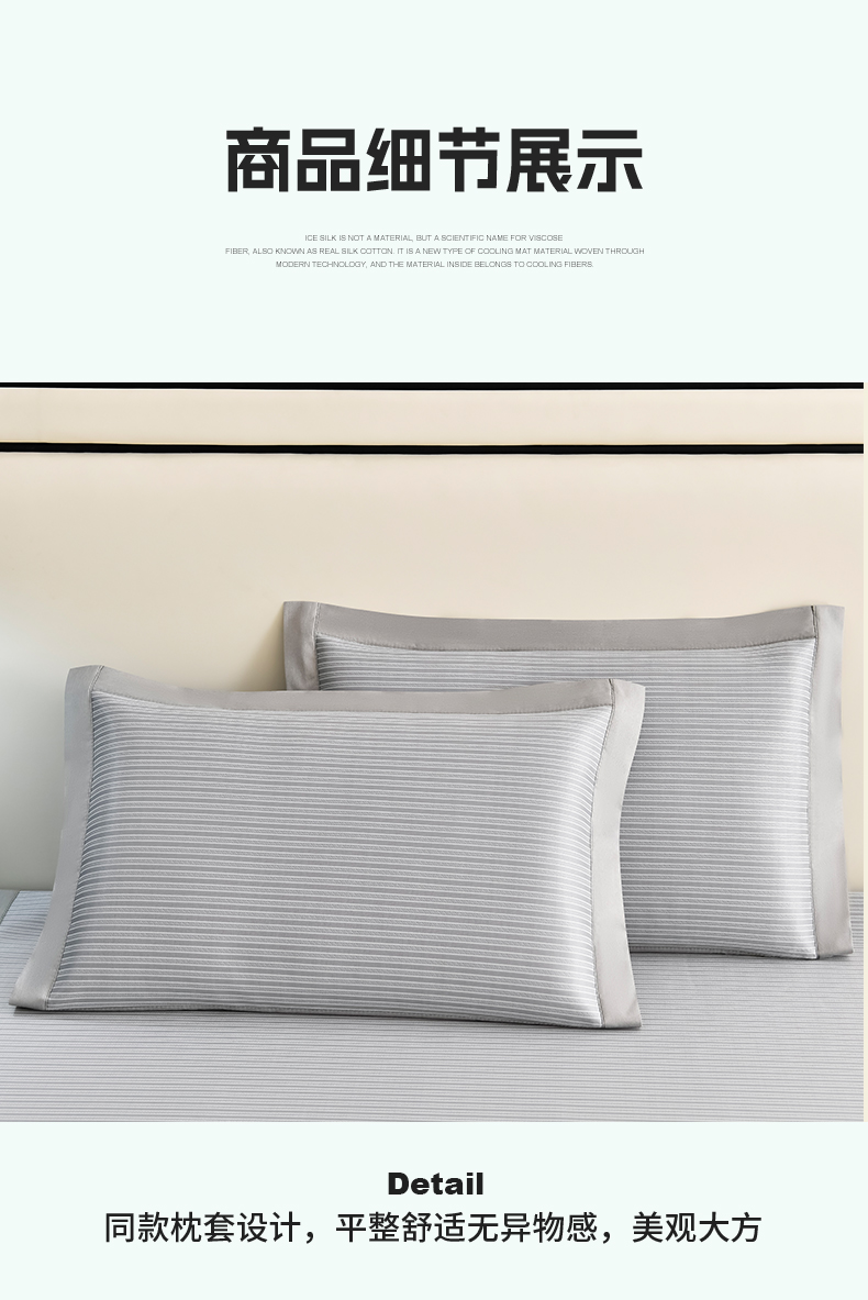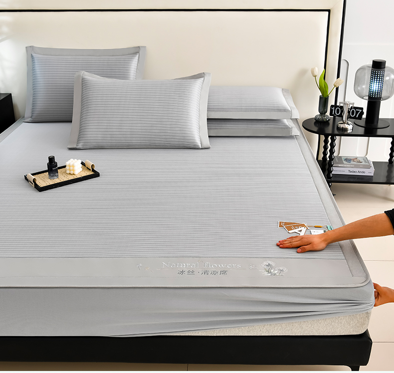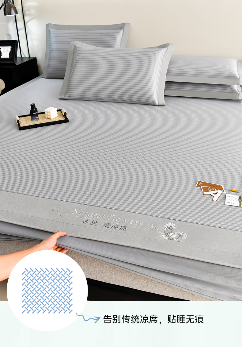 商品名称:小牛席业 2026新款经典条纹冰丝清凉席系列(床笠款)-绣球凉席藤席冰藤双面席冰丝席竹席凉席空调席草席三件套 灰色