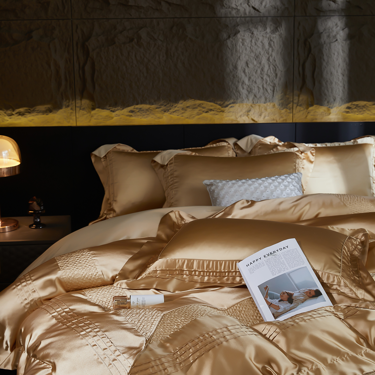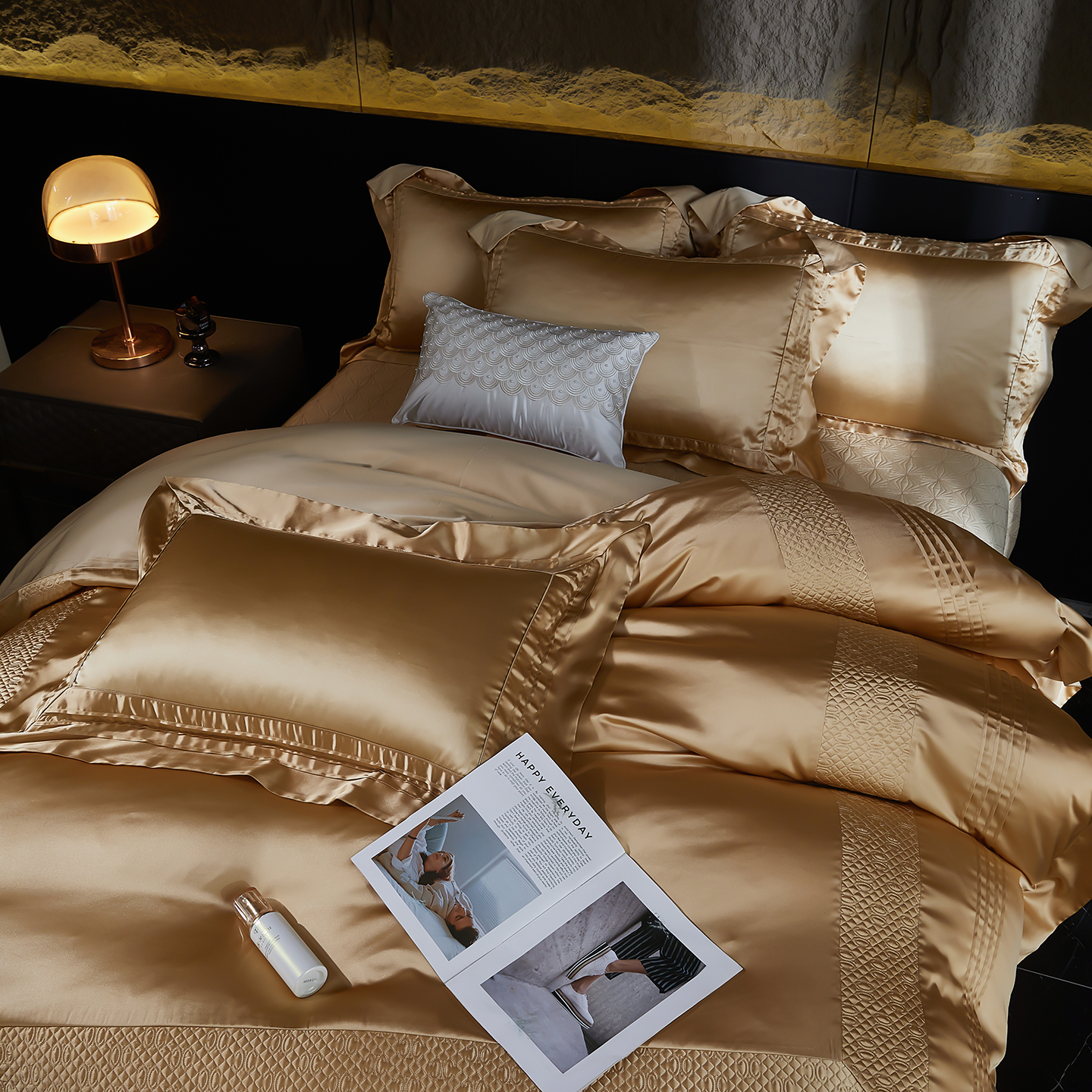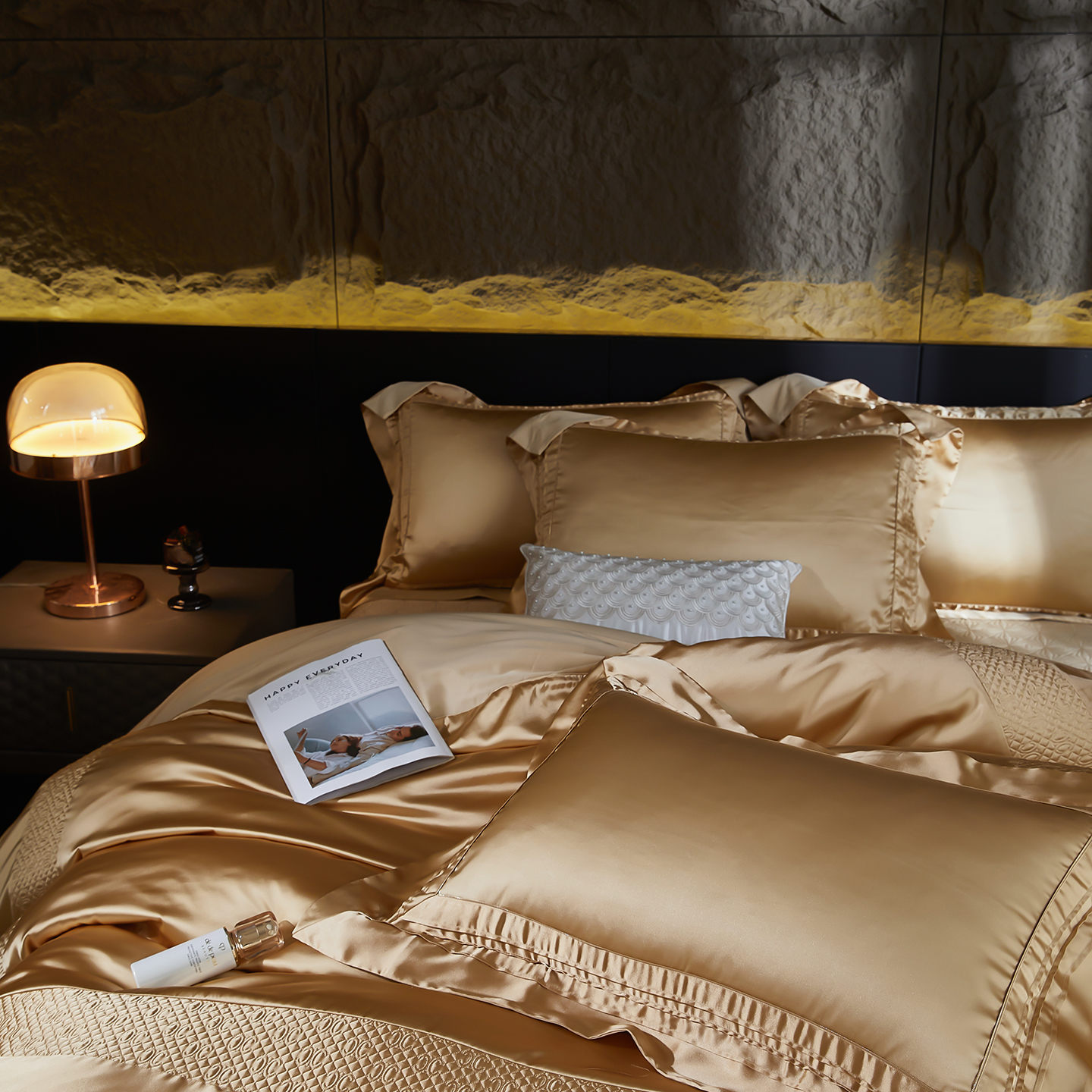 商品名称:edra 2026新款真丝天丝轻奢床盖款四件套-凯瑟琳 凯瑟琳金色