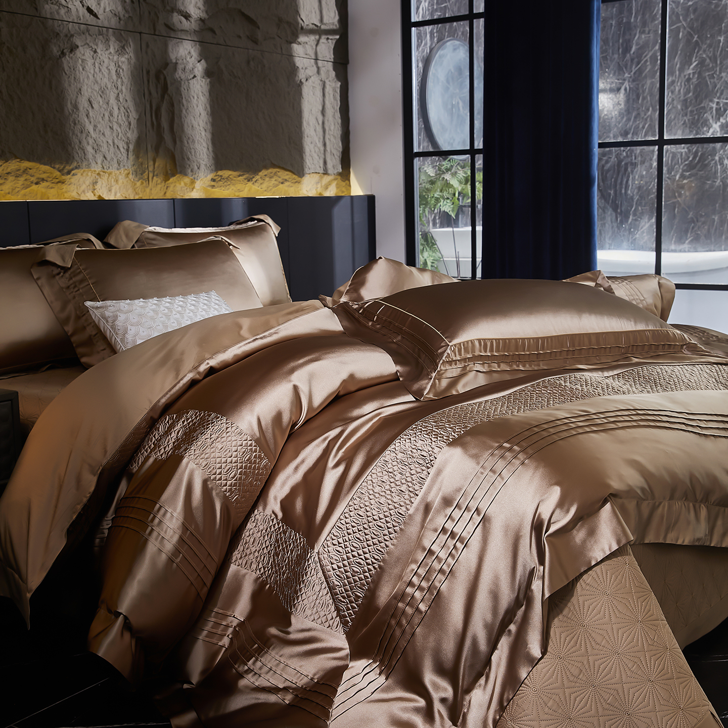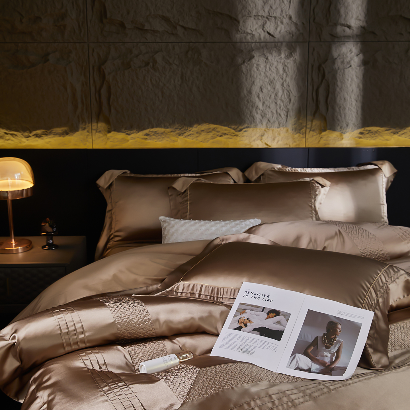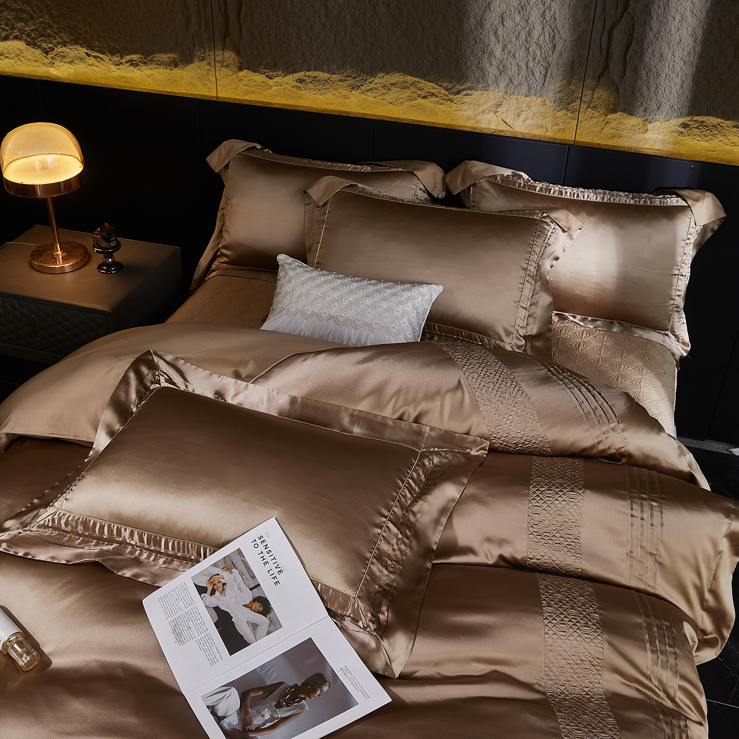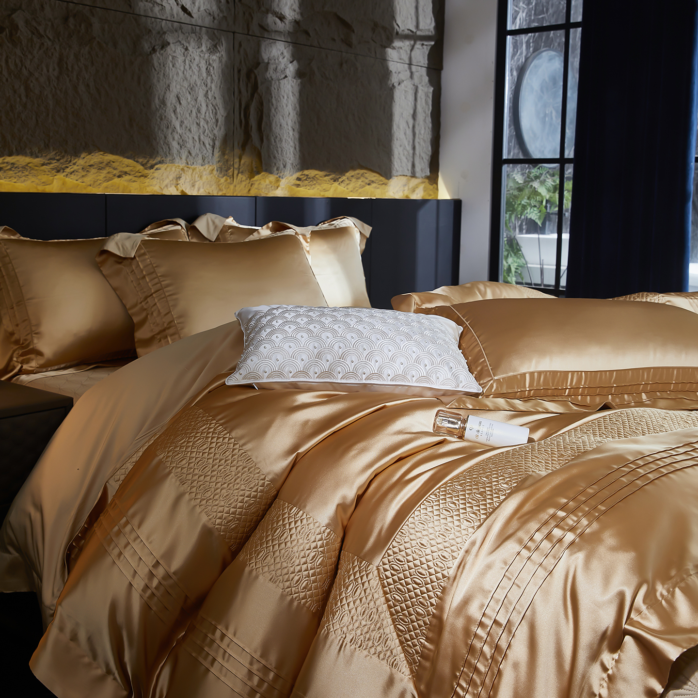商品名称:edra 2026新款真丝天丝轻奢床盖款四件套-凯瑟琳 凯瑟琳金色