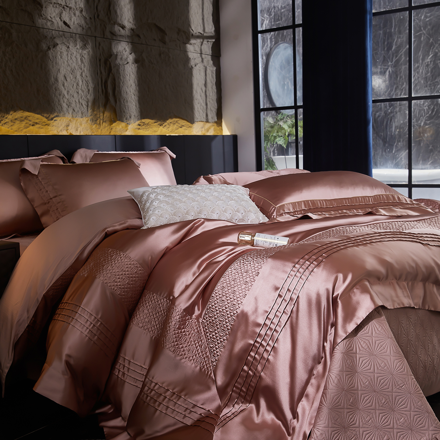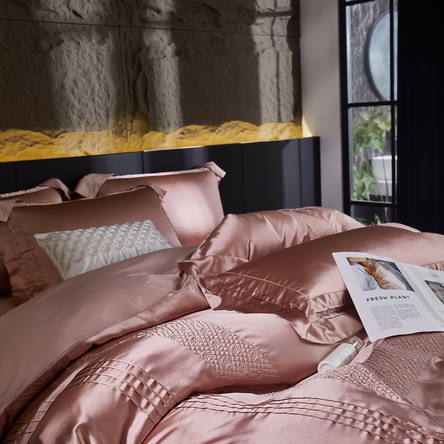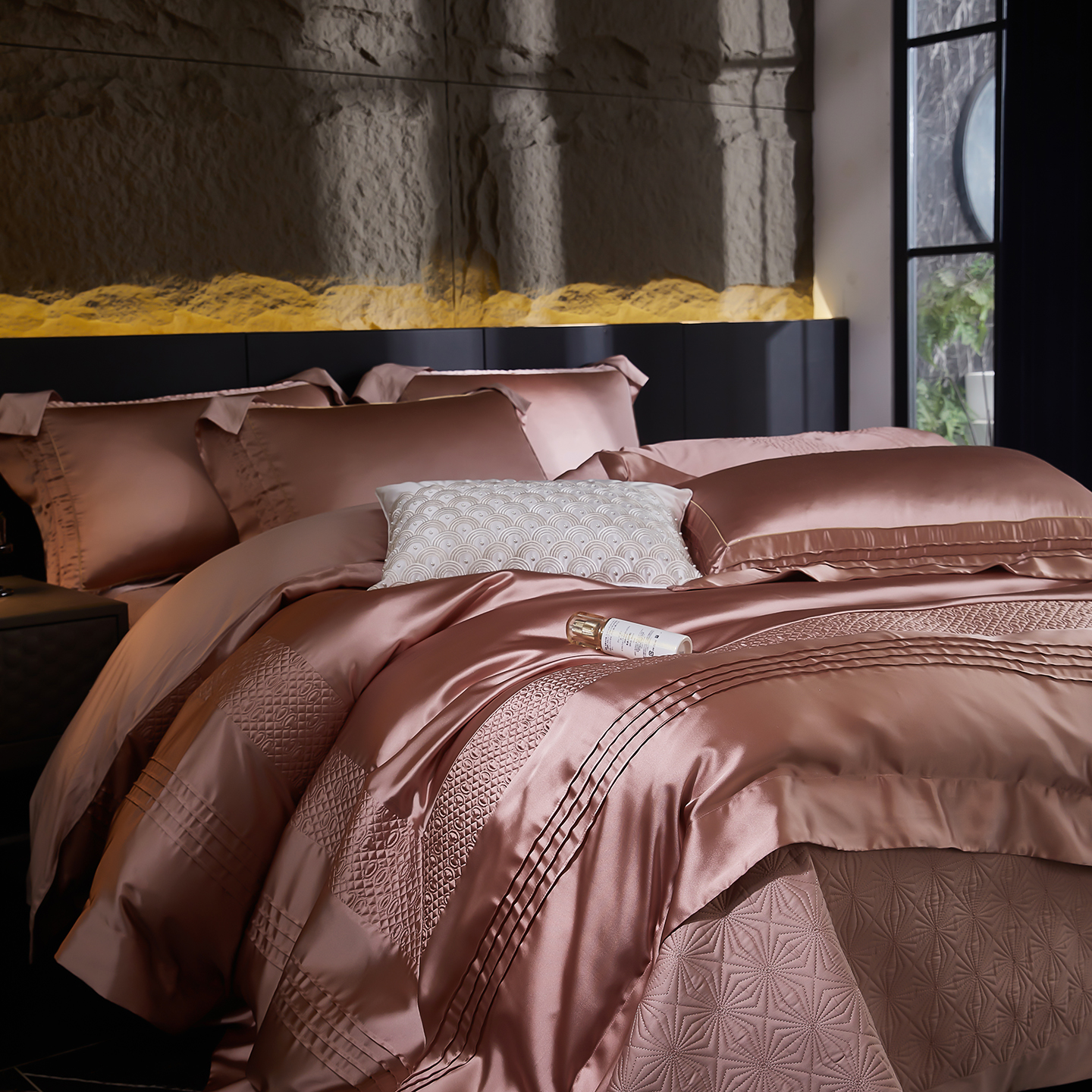 (总)edra 2026新款真丝天丝轻奢提花床盖款四件套-拉斐尔,香槟白,粉,银灰,金咖,蓝