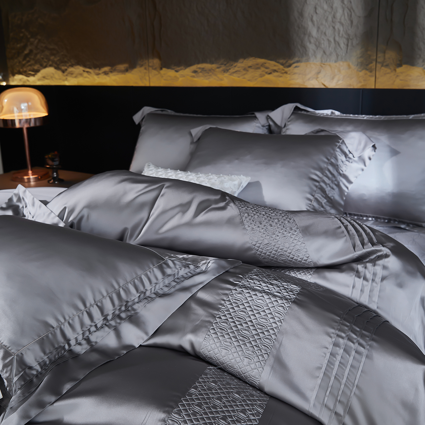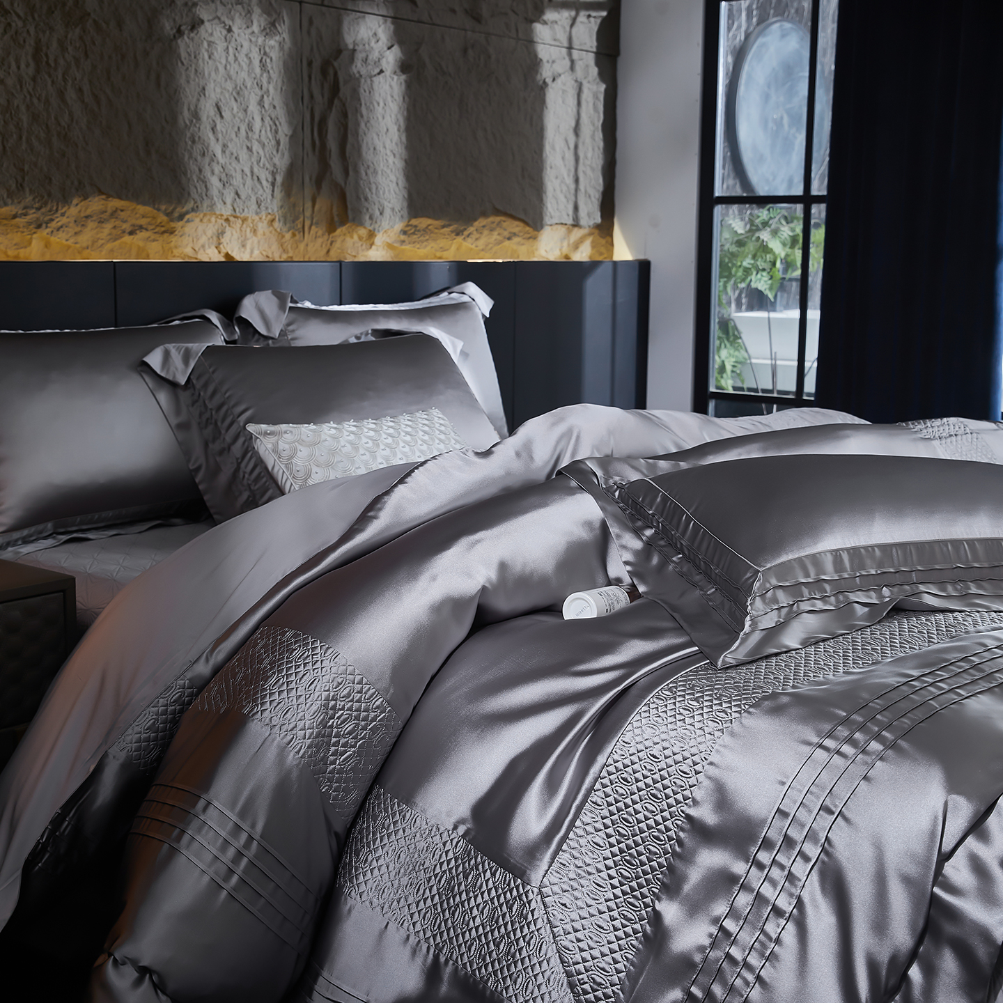 (总)edra 2026新款真丝天丝轻奢提花床盖款四件套-繁花,繁花-深灰,繁花-银灰