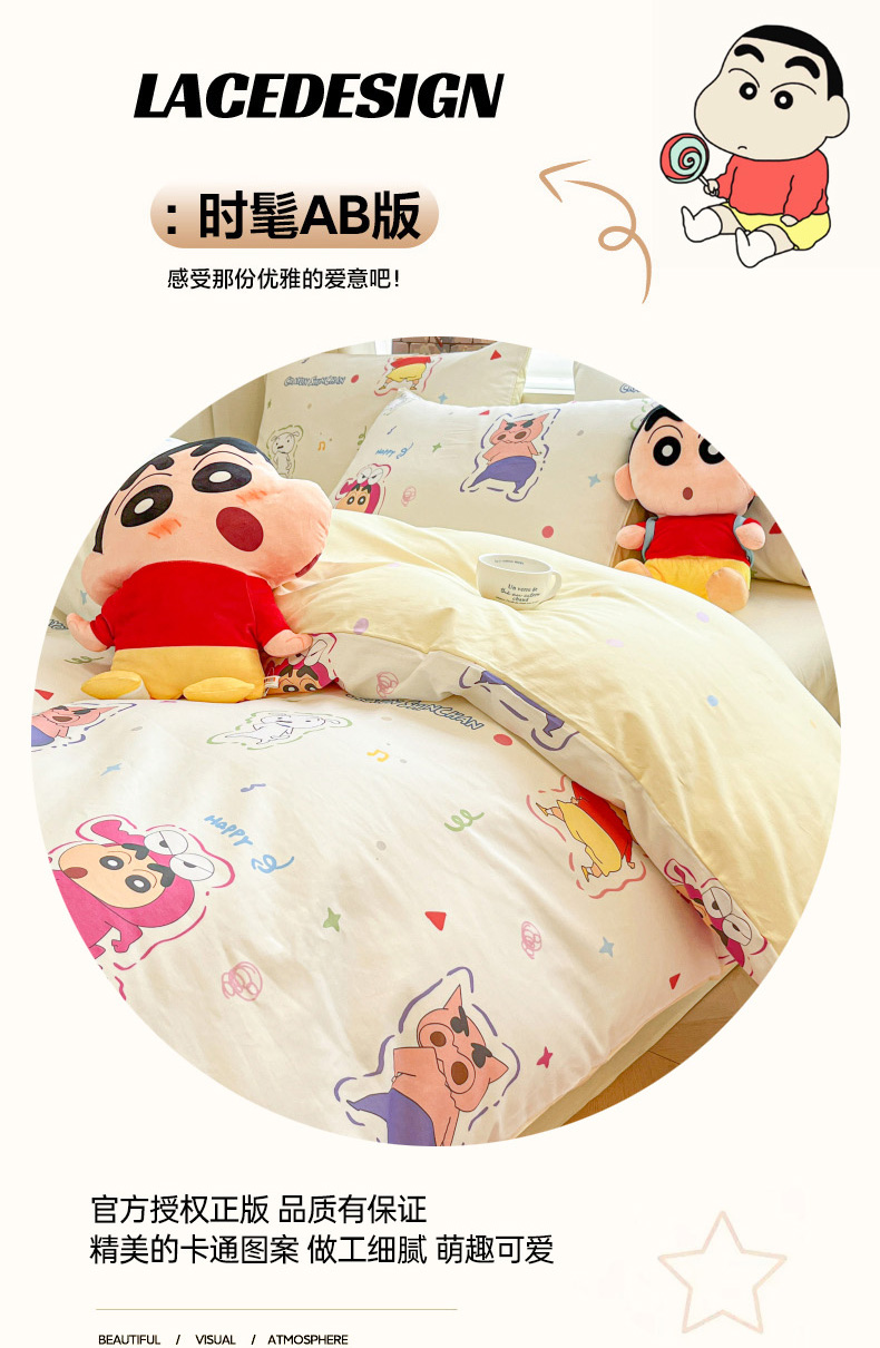 当前位置: 91家纺网 > 商品网购 > 床品套件 > 四件套 > 全棉普通四件套 > 暮思家居 2026春夏新款正版授权蜡笔小新全棉纯棉四件套系列 可爱小新