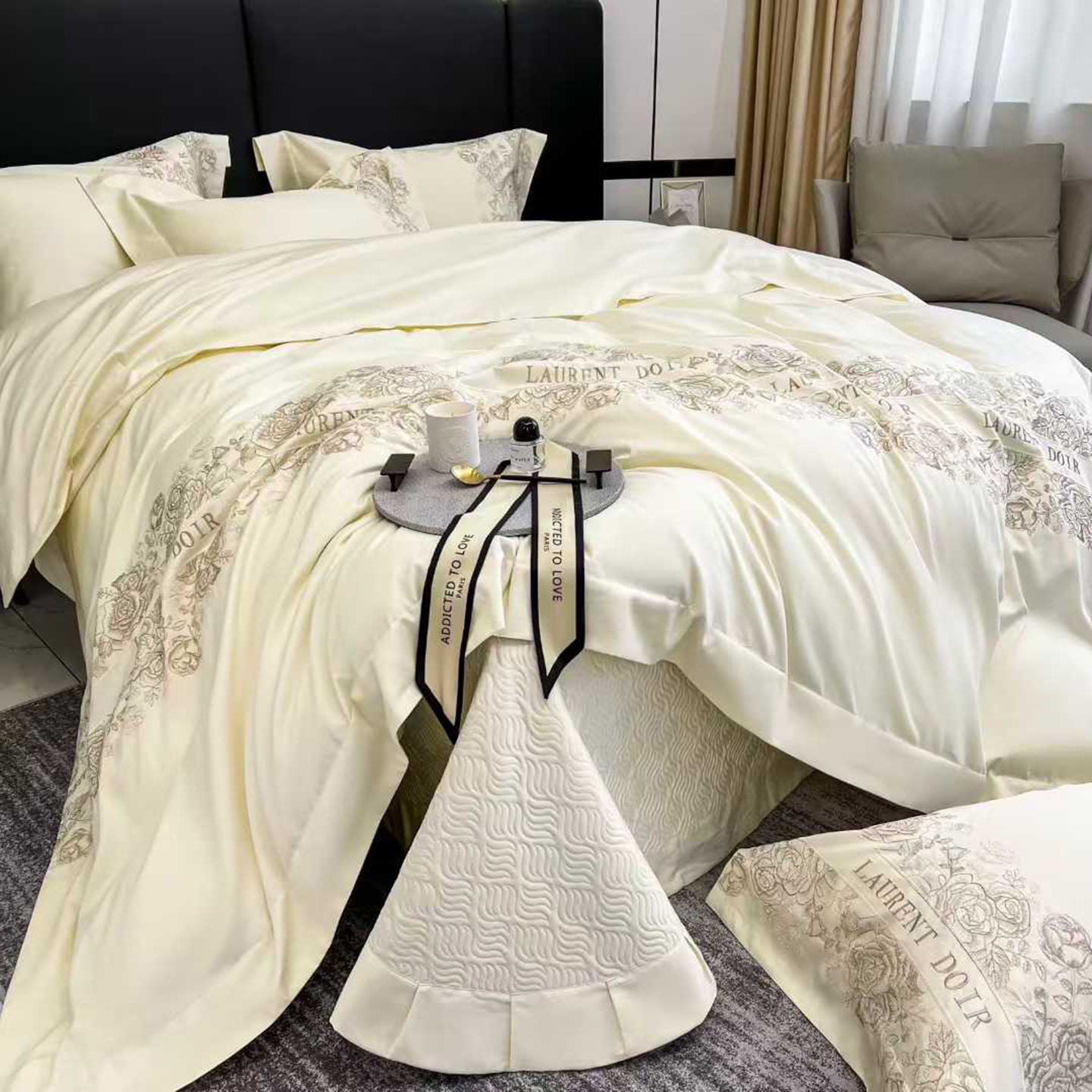 (总)edra 2026新款真丝天丝轻奢提花床盖款四件套-繁花,繁花-深灰,繁花-银灰