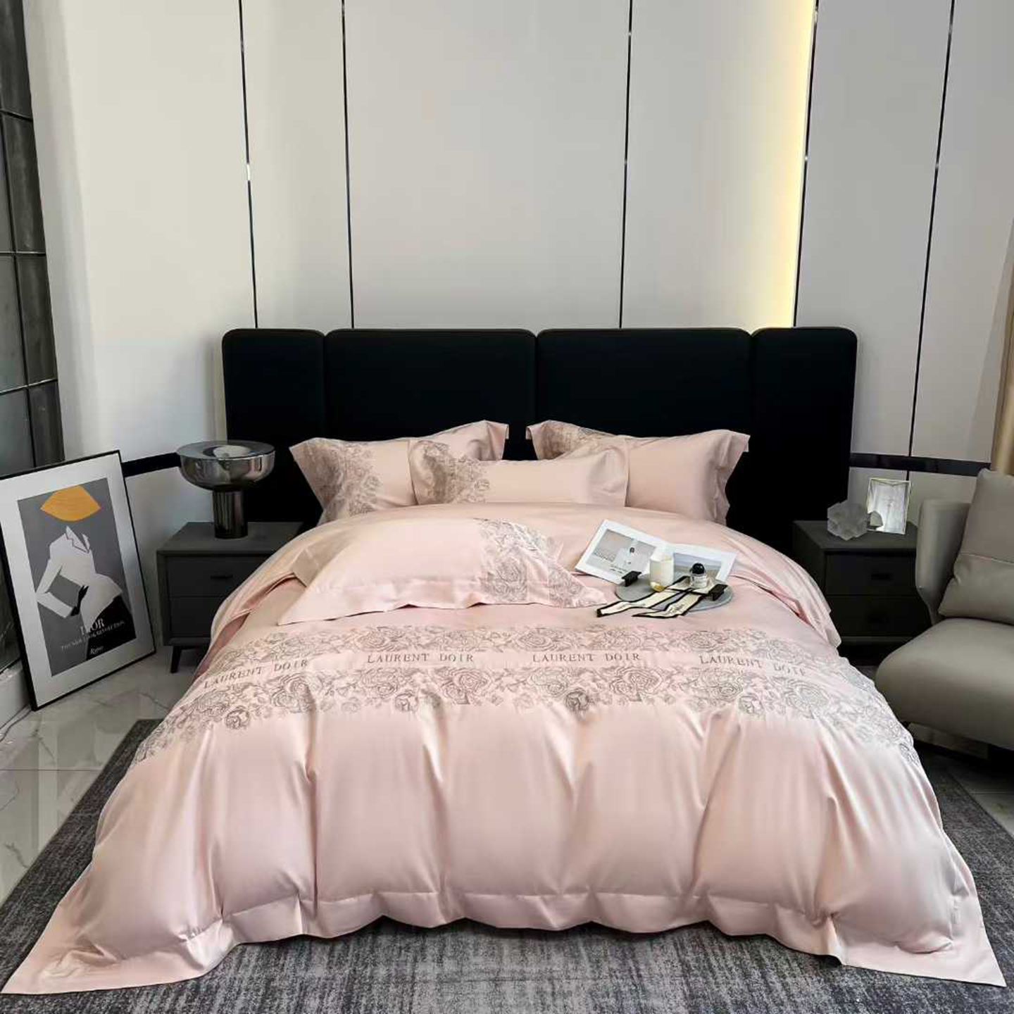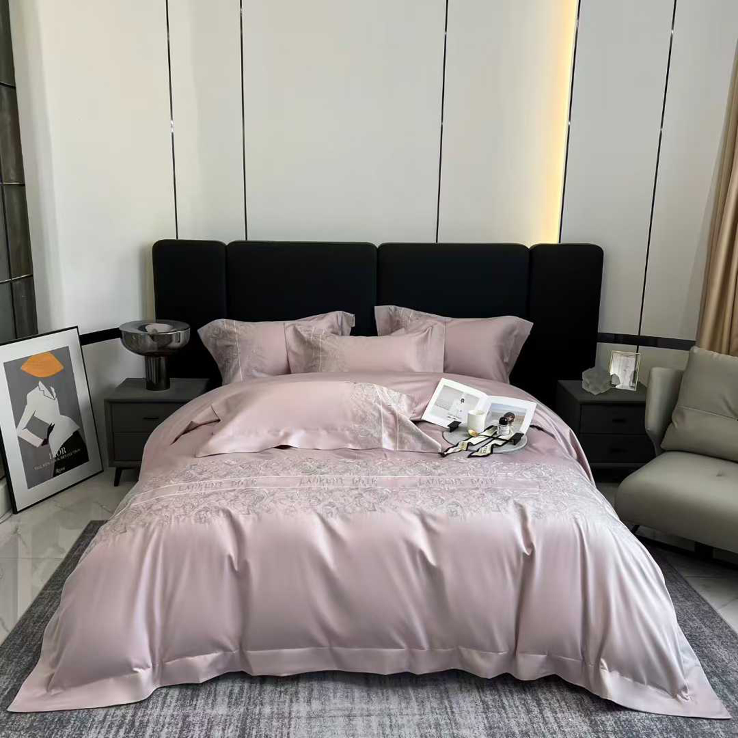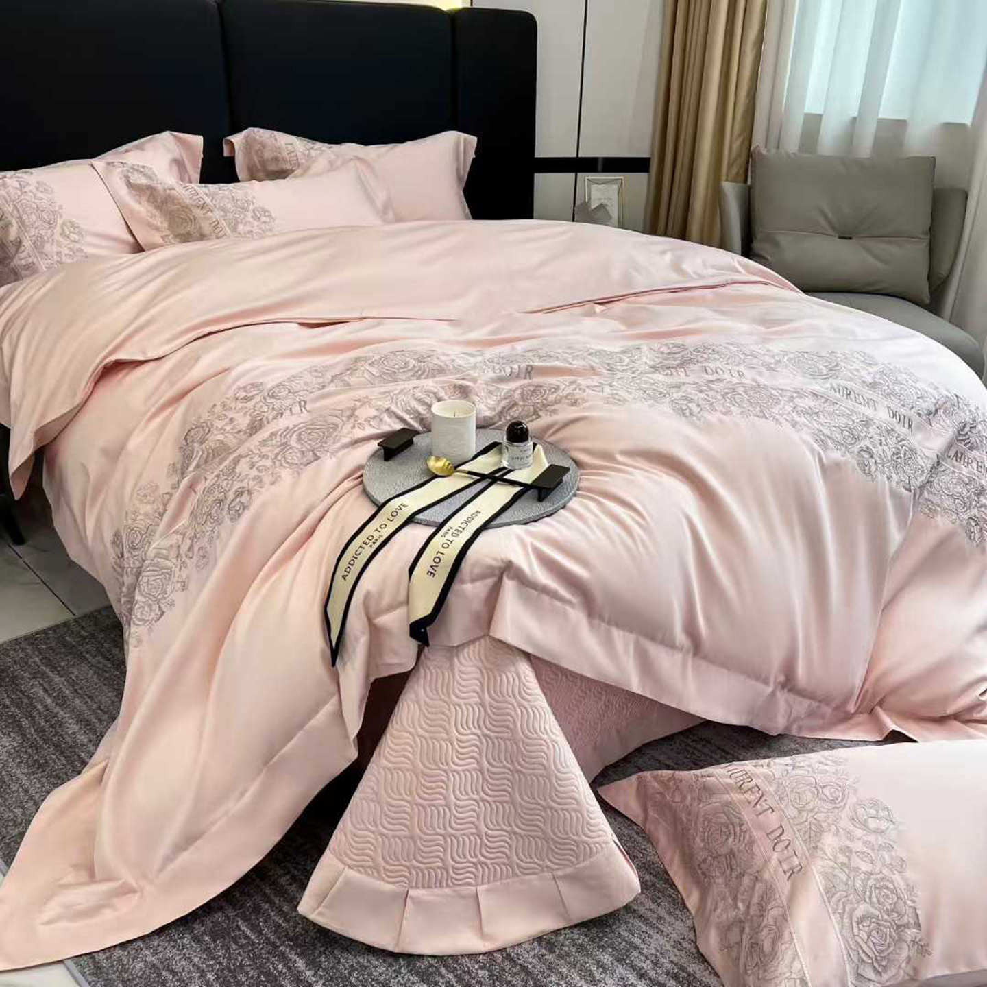 edra 2026新款纯棉长绒棉轻奢刺绣床盖款四件套-迪奥 迪奥粉