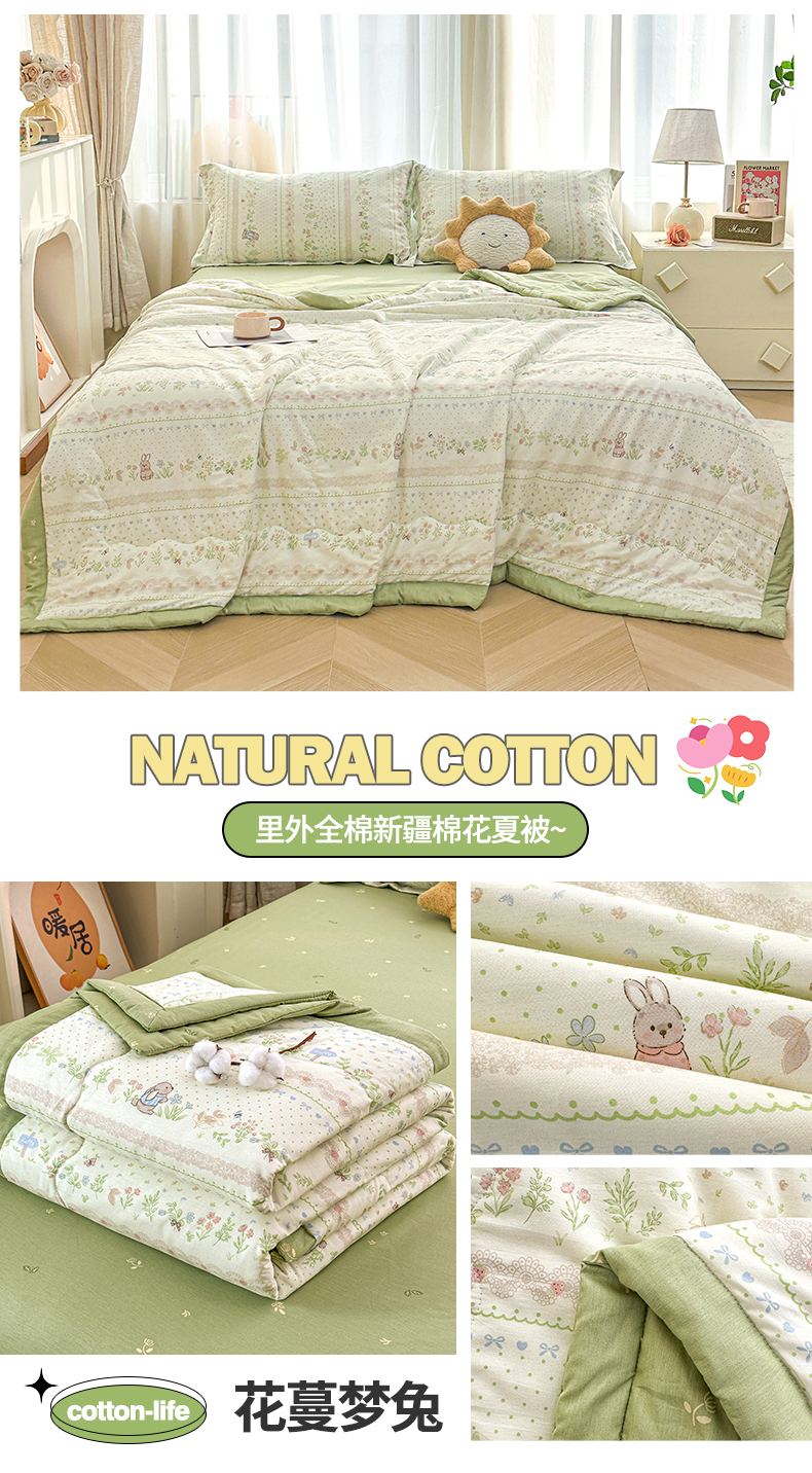 商品名称:易博家纺 2026新款小清新款里外全棉纯棉夏被夏凉被空调被 花蔓梦兔