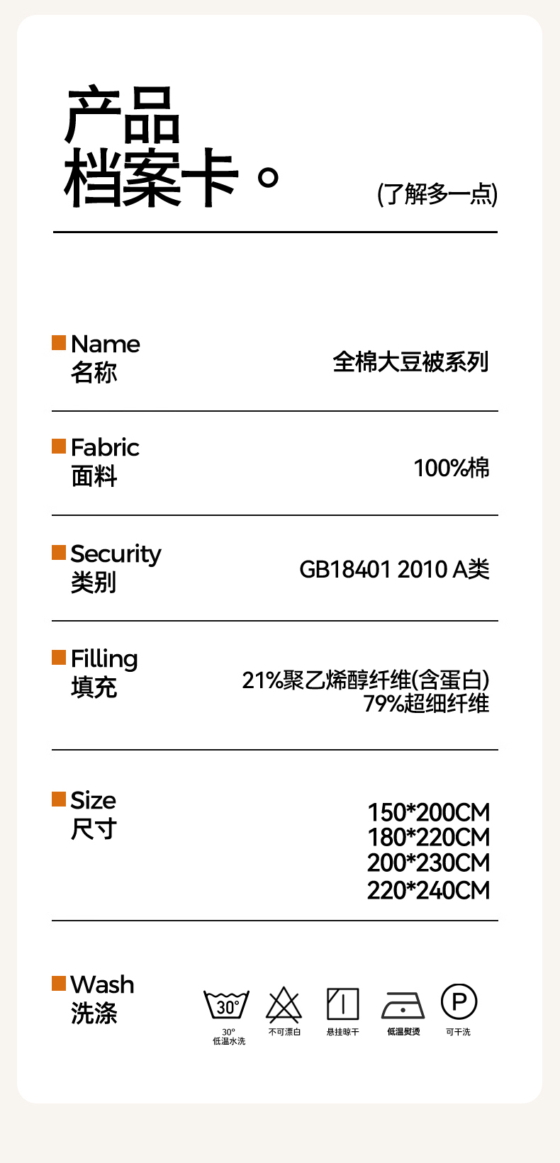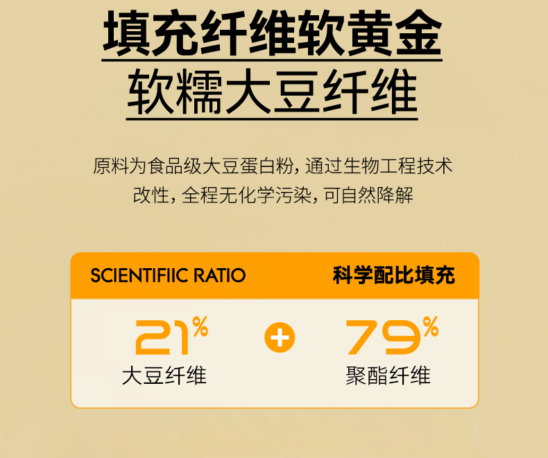 • 填充纤维种类: 大豆蛋白改性聚酯纤维