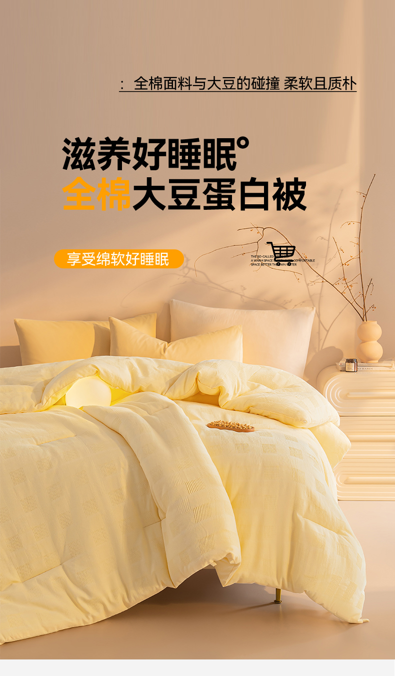 • 91家纺网 家纺一手货源 找家纺 (总)锦尚坊被芯馆 2026新款大提花全棉21%大豆被纯棉立体双边被子春秋被加厚冬被夏被直播包质检,奶白,玉色