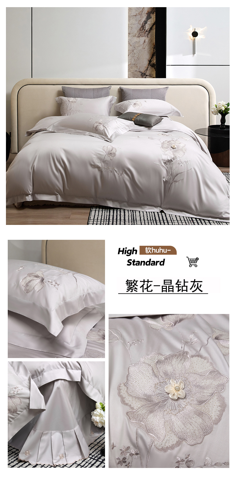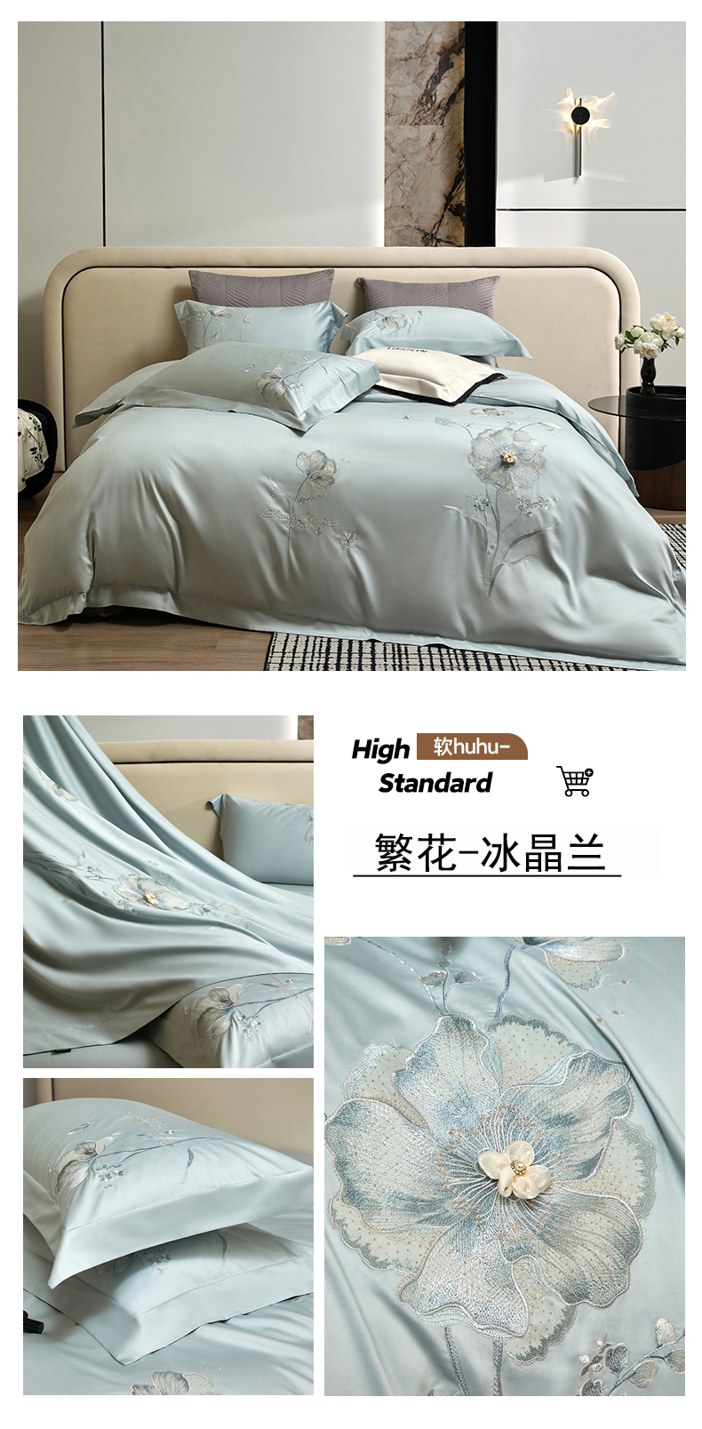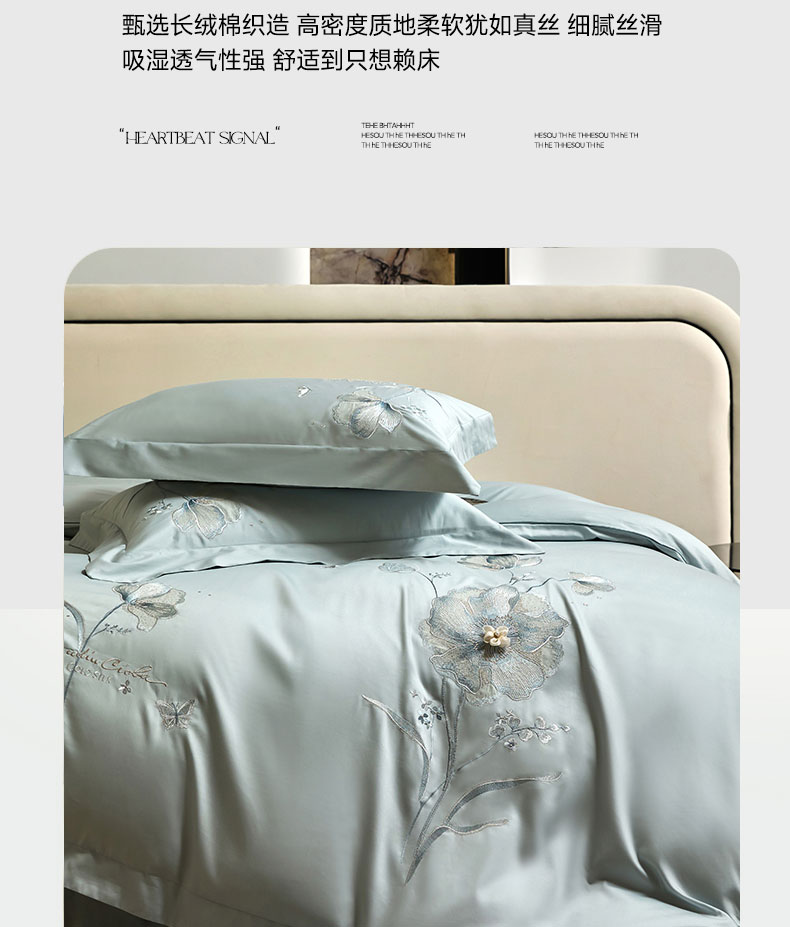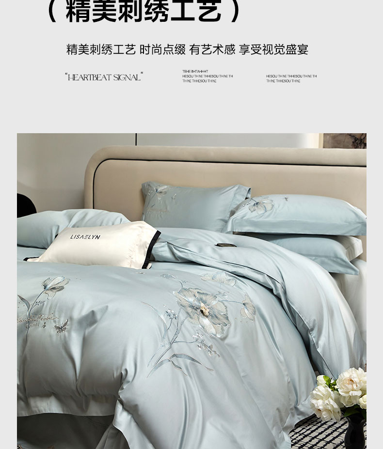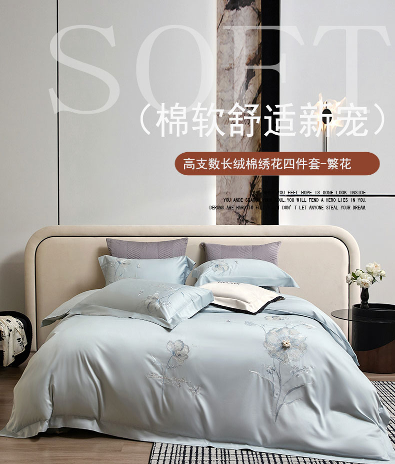 蒂爵 2026新款贡缎100支长绒棉全棉纯棉刺绣绣花四件套高端四件套-繁花 繁花-冰晶兰