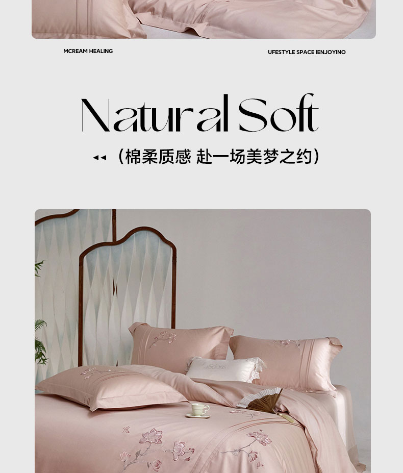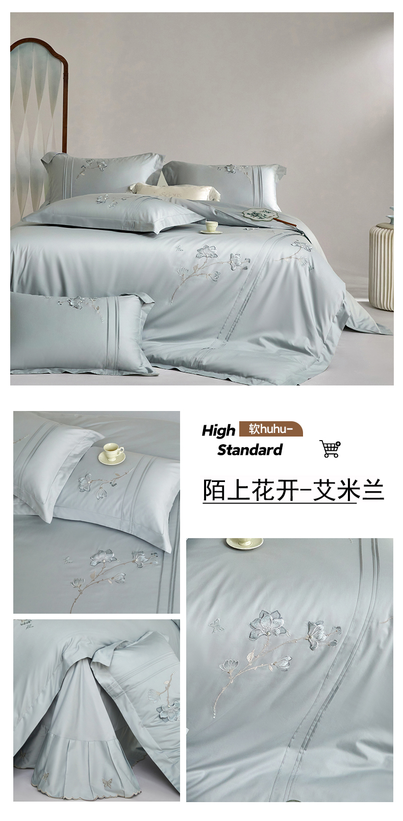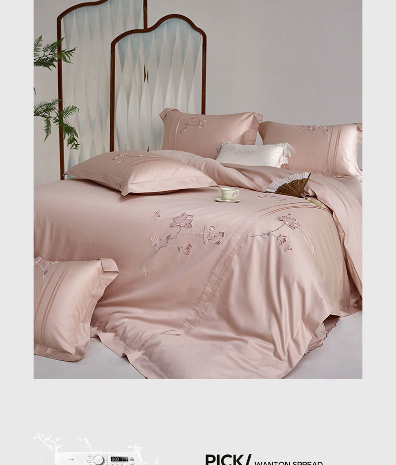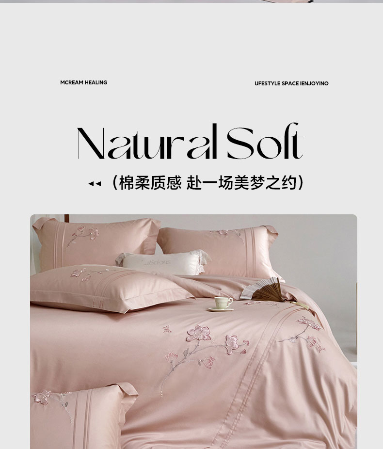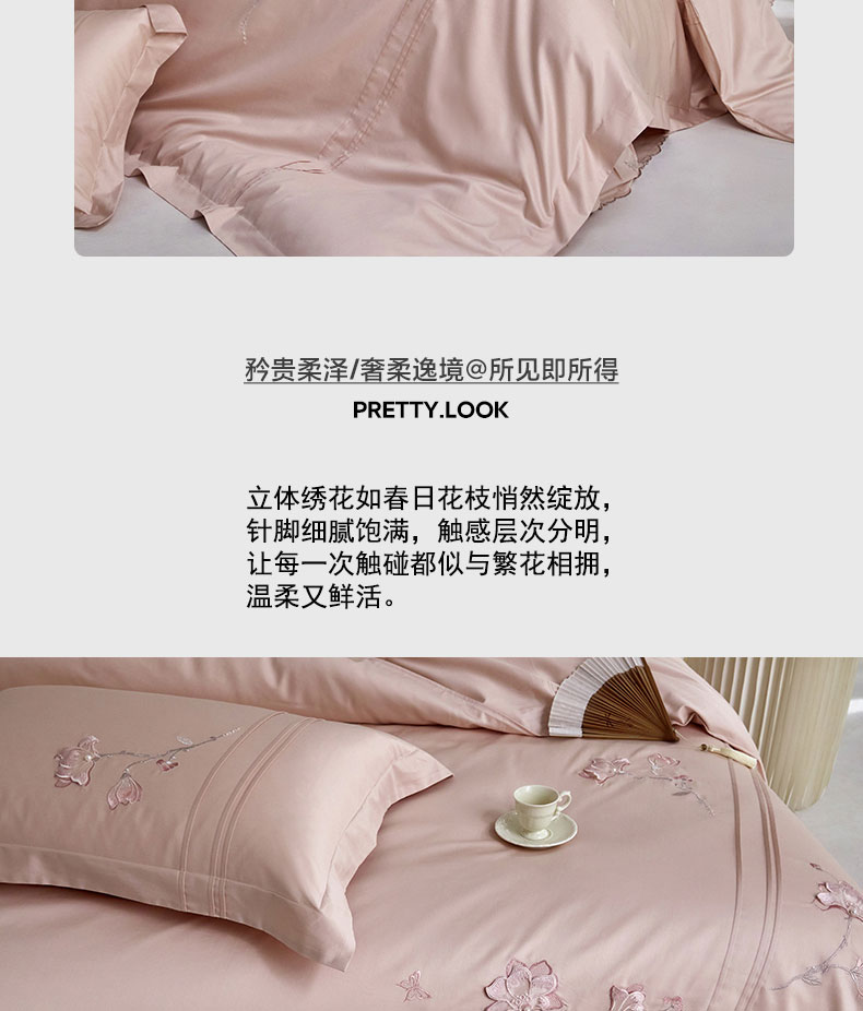 蒂爵 2026新款贡缎100支长绒棉全棉纯棉刺绣绣花四件套高端四件套-陌上花开 陌上花开-科舍玉