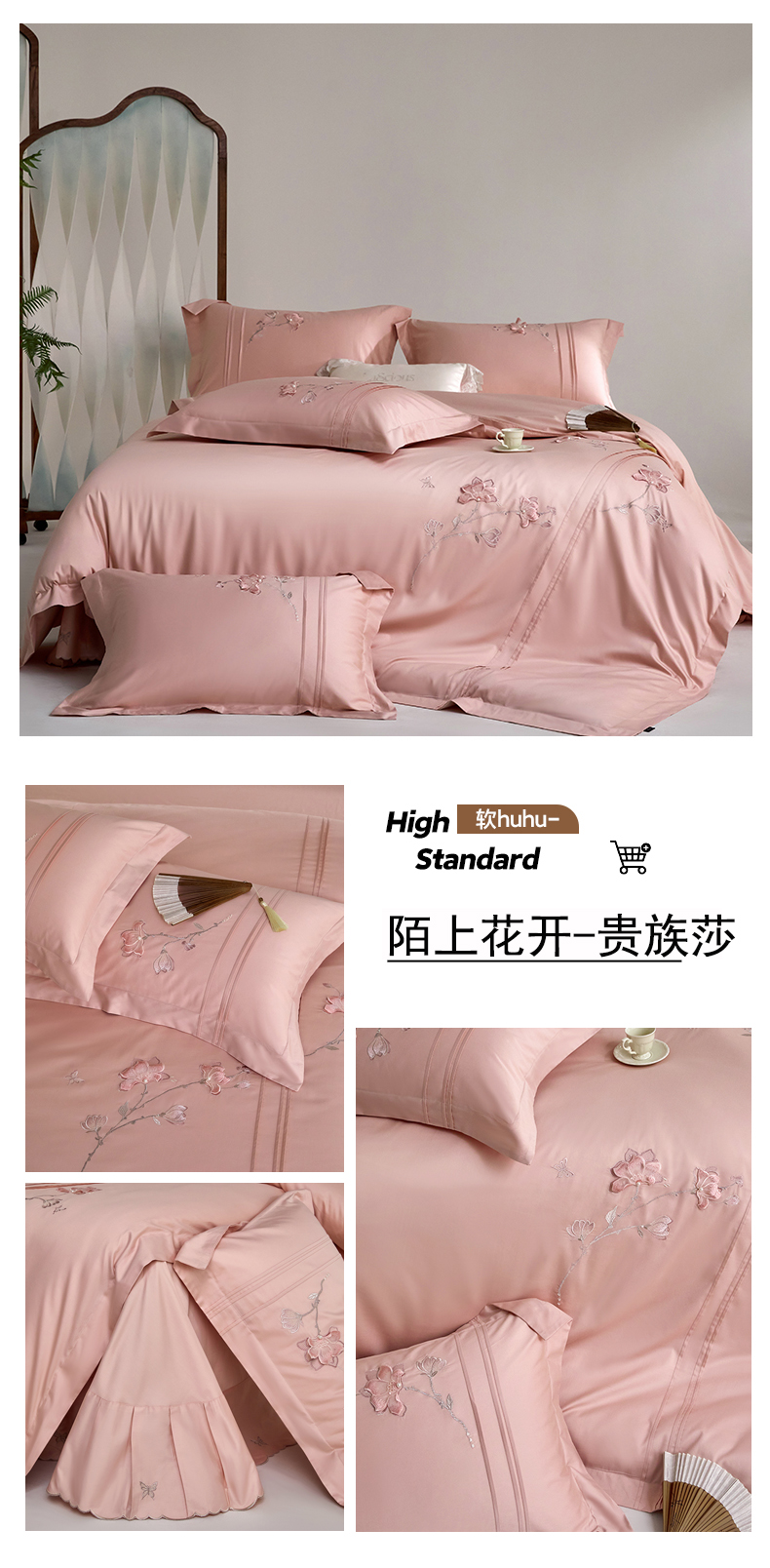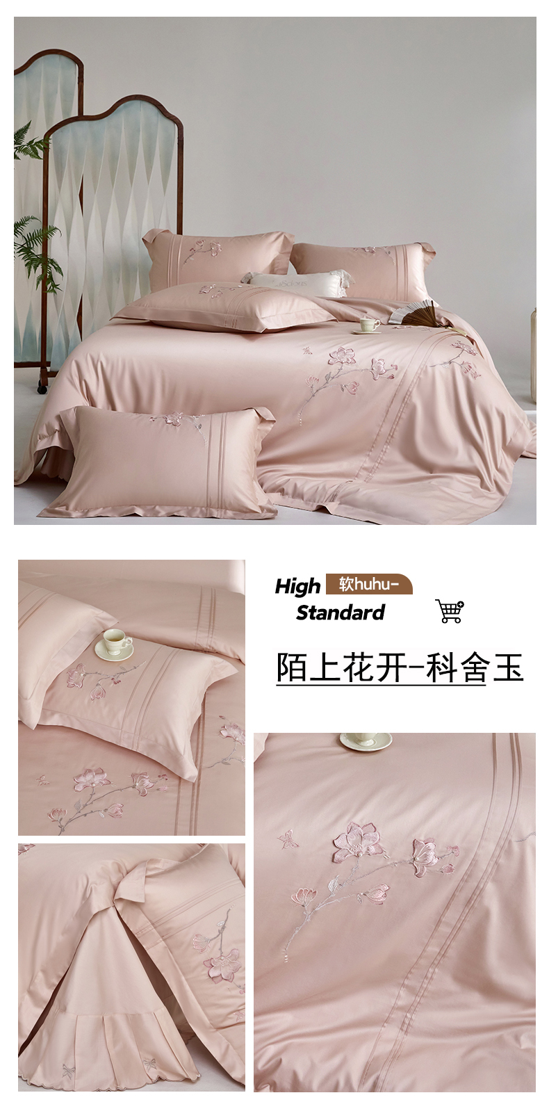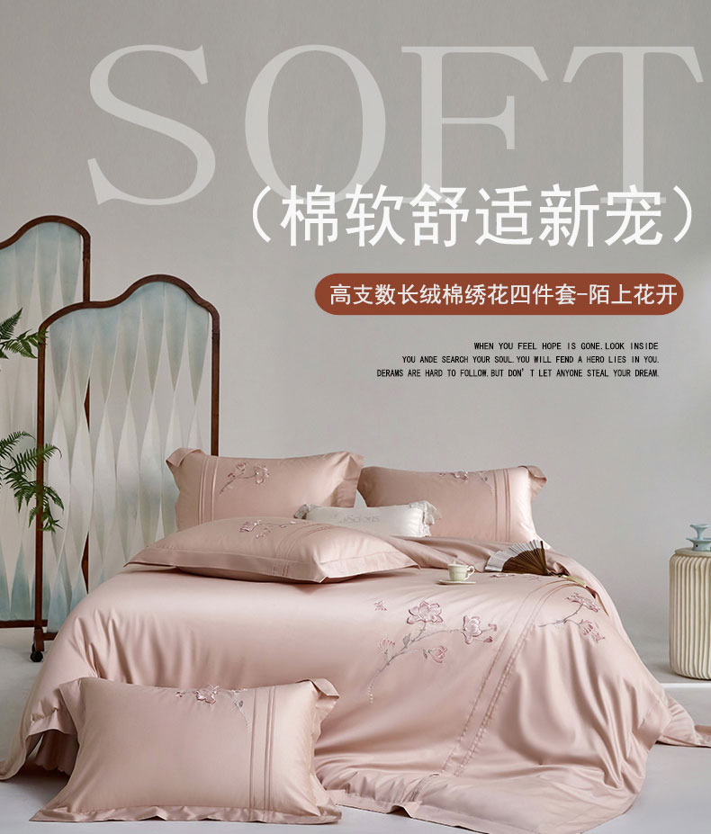 商品名称:蒂爵 2026新款贡缎100支长绒棉全棉纯棉刺绣绣花四件套高端四件套-陌上花开 陌上花开-科舍玉