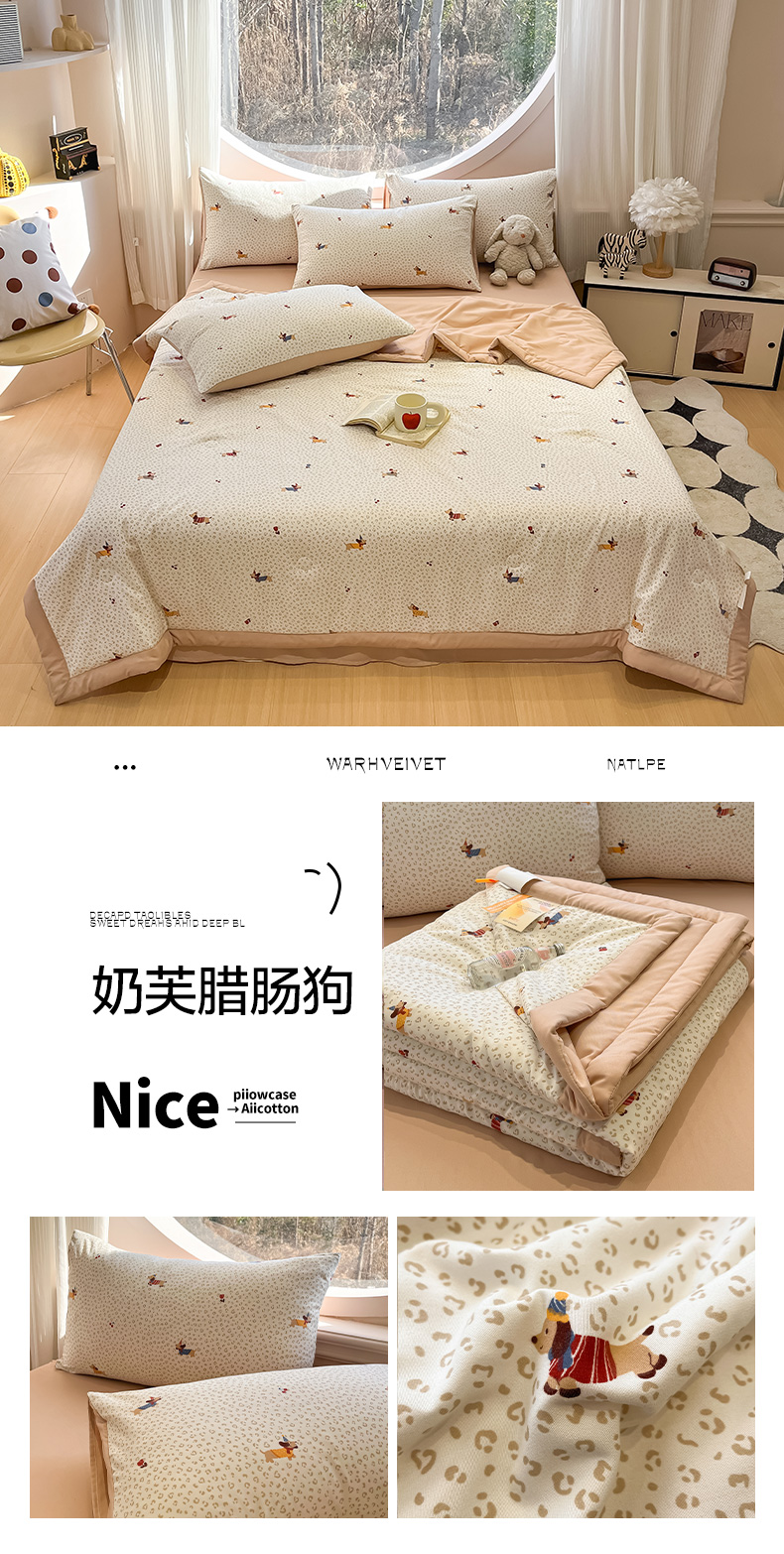 • 91家纺网 家纺一手货源 找家纺 (总)一加一 2026新款全棉色织水洗棉毛巾绣大豆夏被夏凉被空调被-腊肠狗,腊肠狗-粉条,腊肠狗-海盐,腊肠狗-灰条,腊肠狗-蓝调,腊肠狗-奶白,腊肠狗-樱花