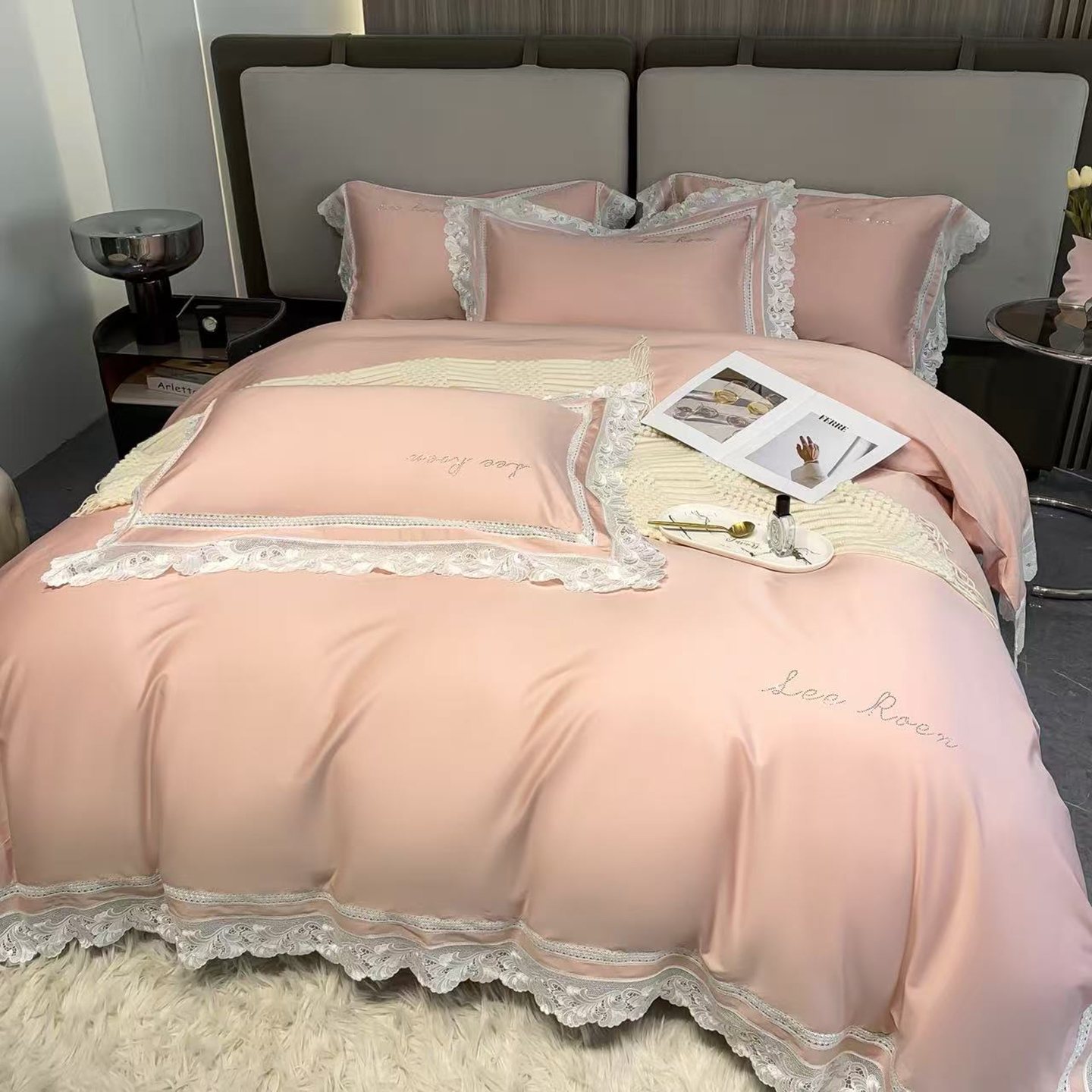 (总)edra 2026新款纯棉长绒棉轻奢拉花床盖款四件套-薇诺娜,薇诺娜-奶白,薇诺娜-粉,薇诺娜-咖