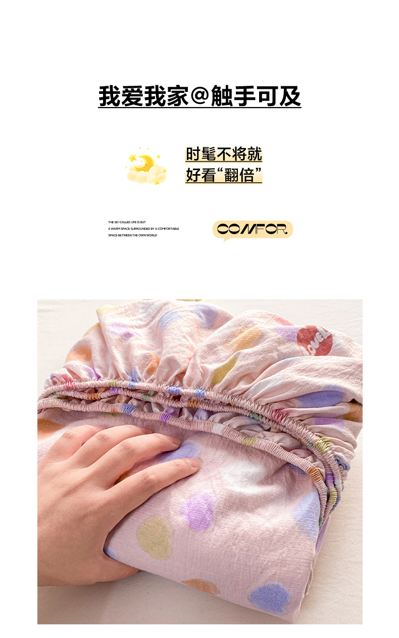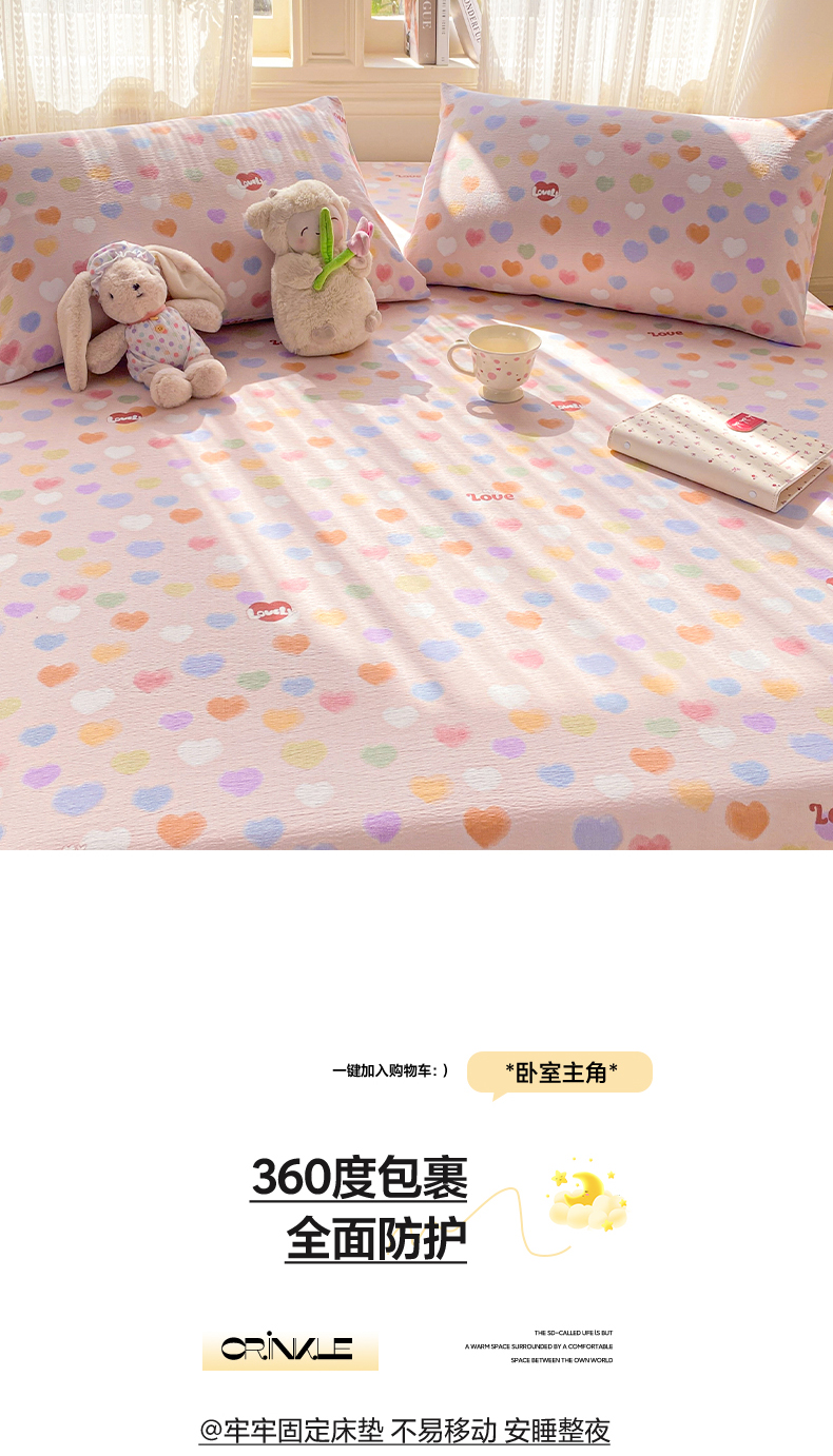 • 91家纺网 家纺一手货源 找家纺 眠势力 2026新款双层纱床笠单件云感皱皱纱床罩三件套床垫保护套 彩色心情