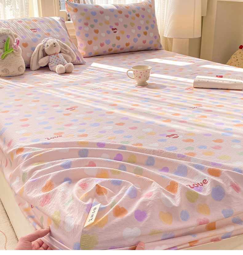 眠势力 2026新款双层纱床笠单件云感皱皱纱床罩三件套床垫保护套 彩色心情