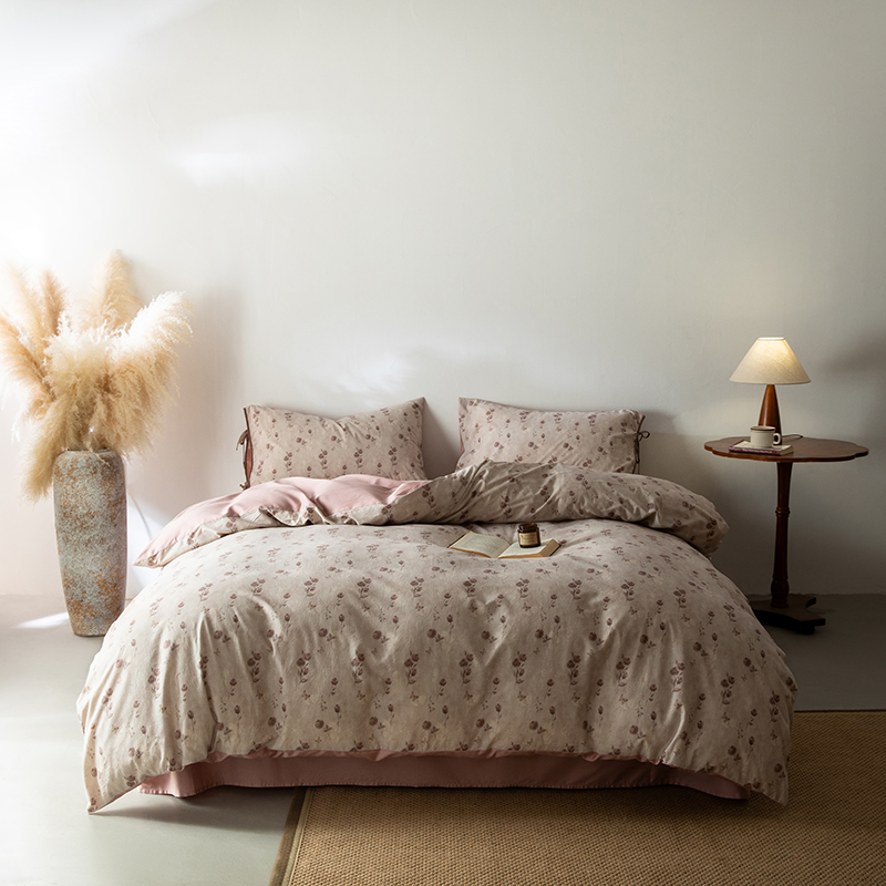 (总)若未家居 LOVEWE HOUSE 2026新款100S数码印花轻奢风四件套-波澜,波澜 爵士灰,波澜 公主粉,波澜 贝拉橘