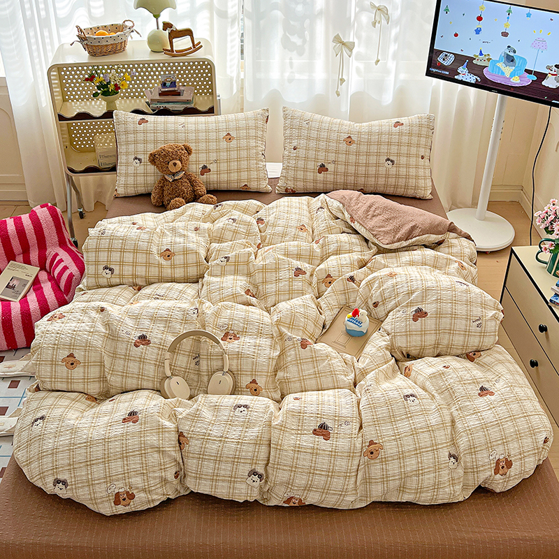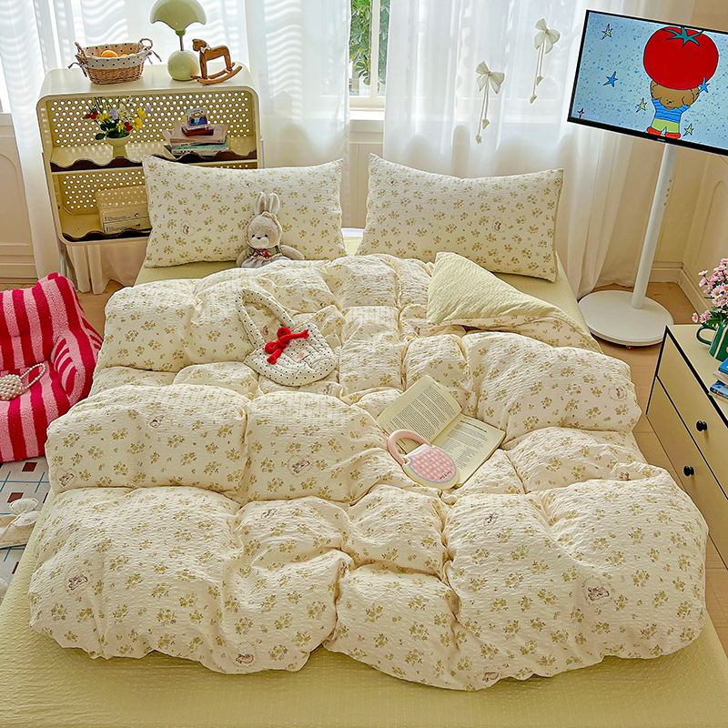 当前位置: 91家纺网 > 商品网购 > 床品套件 > 四件套 > 其它四件套 > 仟网汇 2026新款简单款泡芙纱印花四件套 草莓兔语