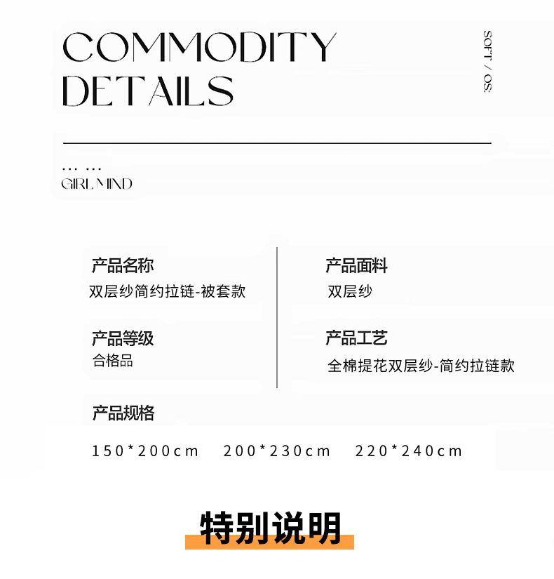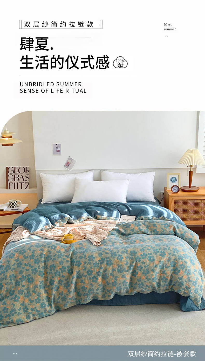 商品名称:春皖家纺 2026新款全棉纯棉拉链款双层纱被套单被套被套单件 百灵斯顿