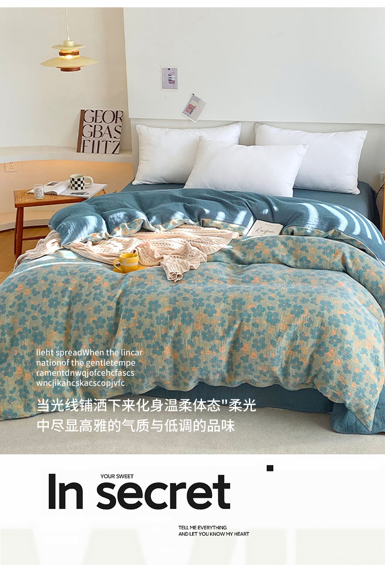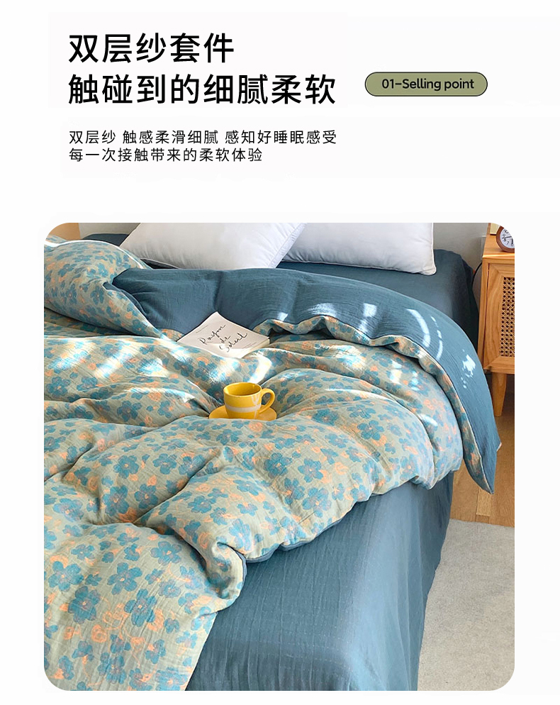 (总)春皖家纺 2026新款全棉纯棉拉链款双层纱四件套,百灵斯顿,夏洛克绿,一丈红,雪花飘,春光灿烂,绮帐-红,绮帐-粉,花漾兰,月临