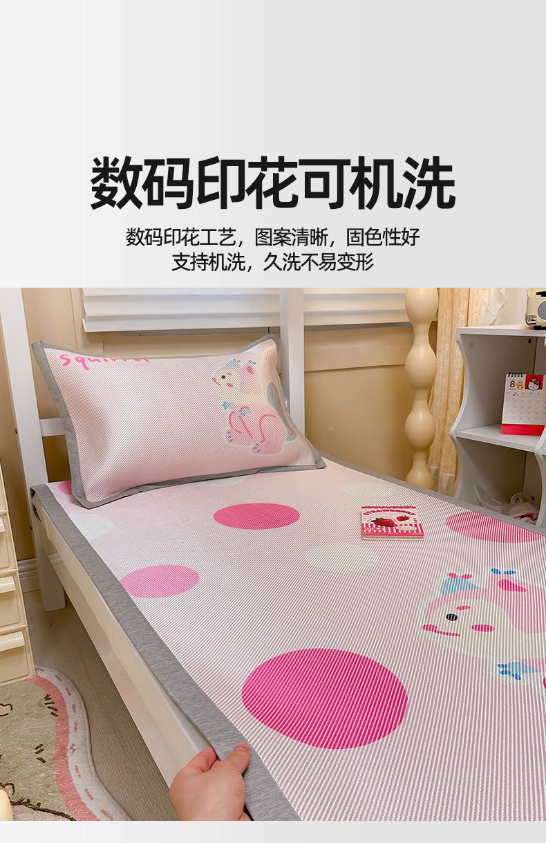 (总)懒猫家纺 2022新款学生宿舍冰丝数码印花凉席,尔雅,粉小兔,花韵,萝卜兔,清晨,手绘爱心,探索星球,甜心,小鲸鱼,小熊仔,元气兔