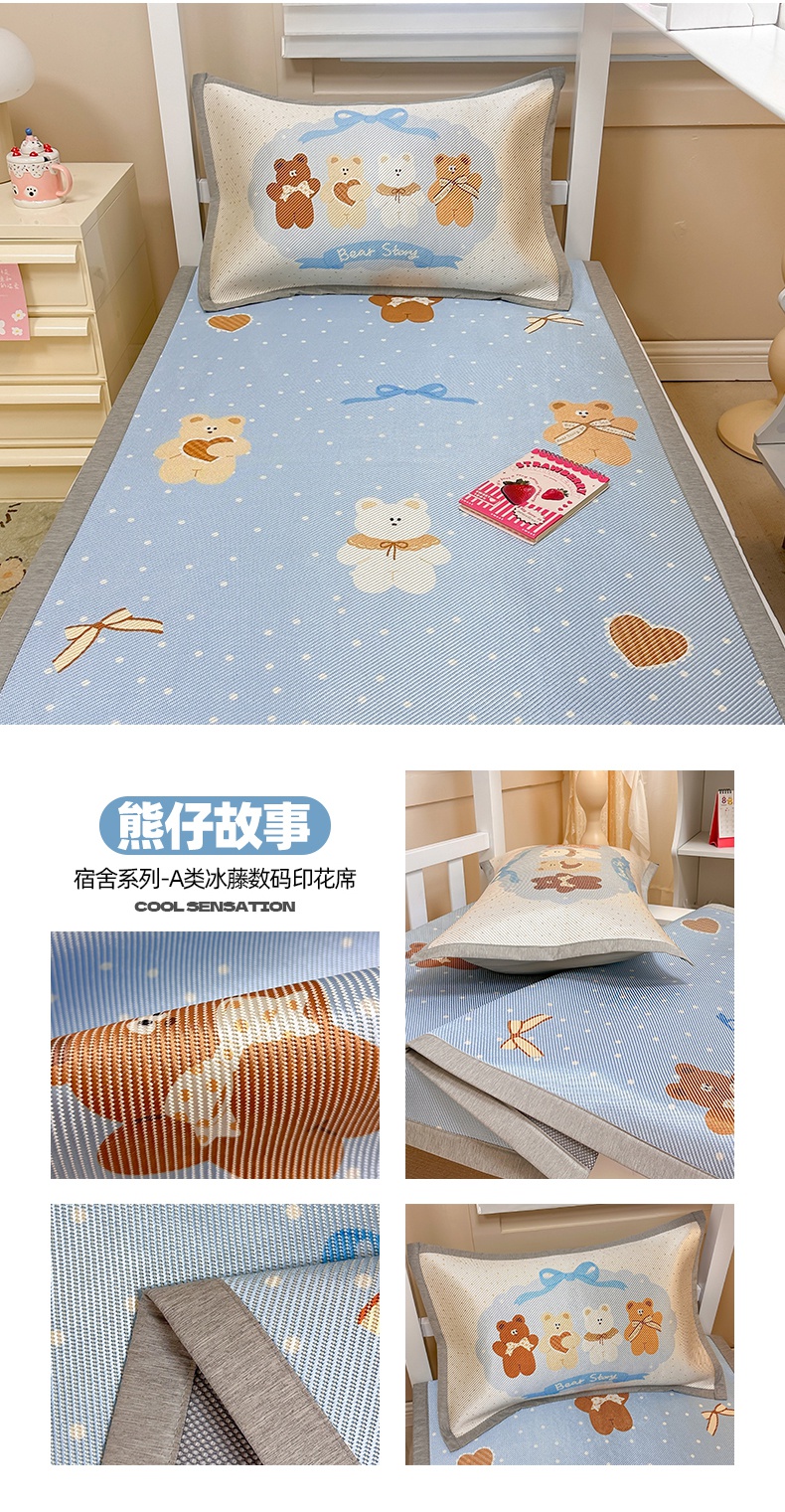 商品名称:懒猫家纺 2026新款600D数码印花大版学生宿舍冰藤凉席 冒险小鹿