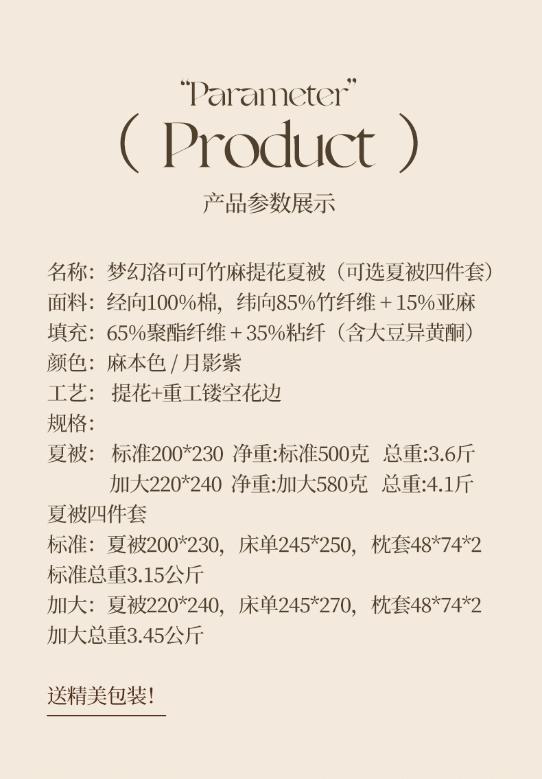商品名称:(总)桂雅居 2026新款梦幻洛可可竹麻提花夏被