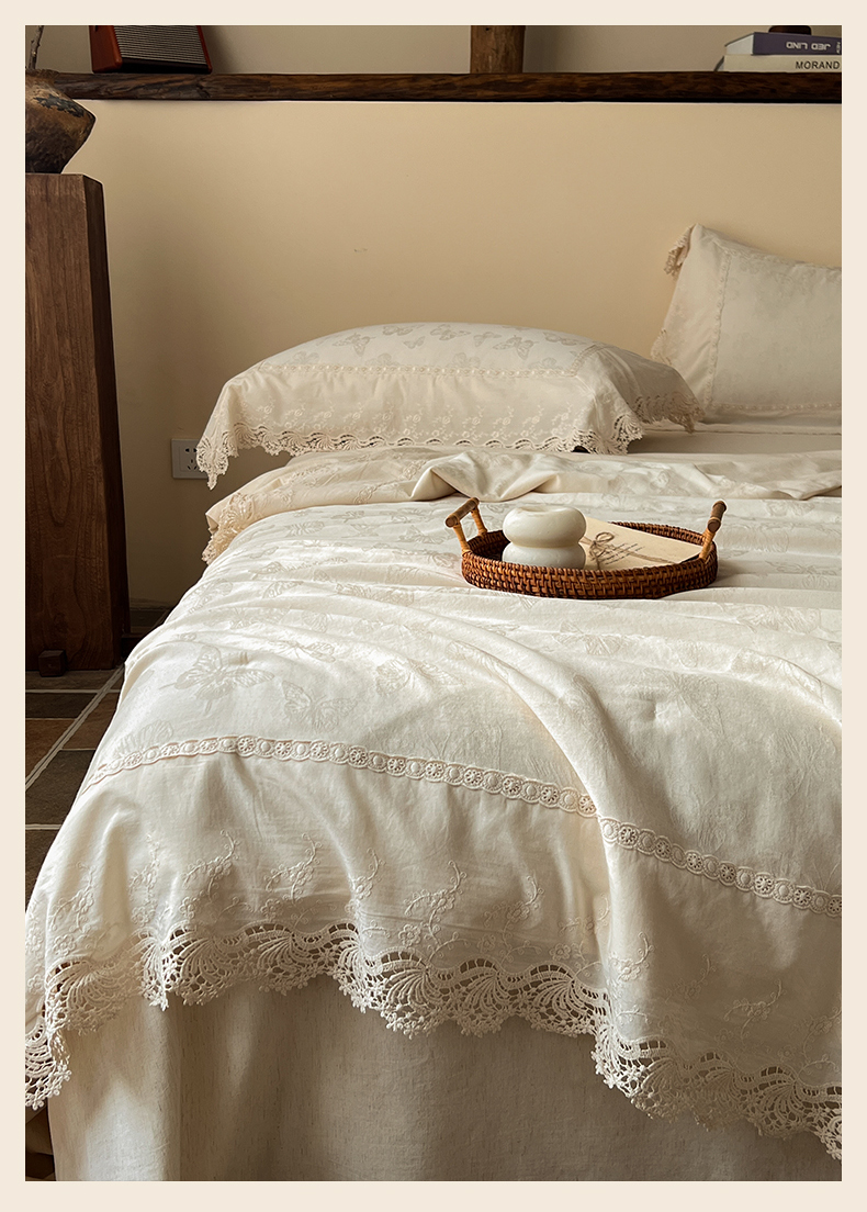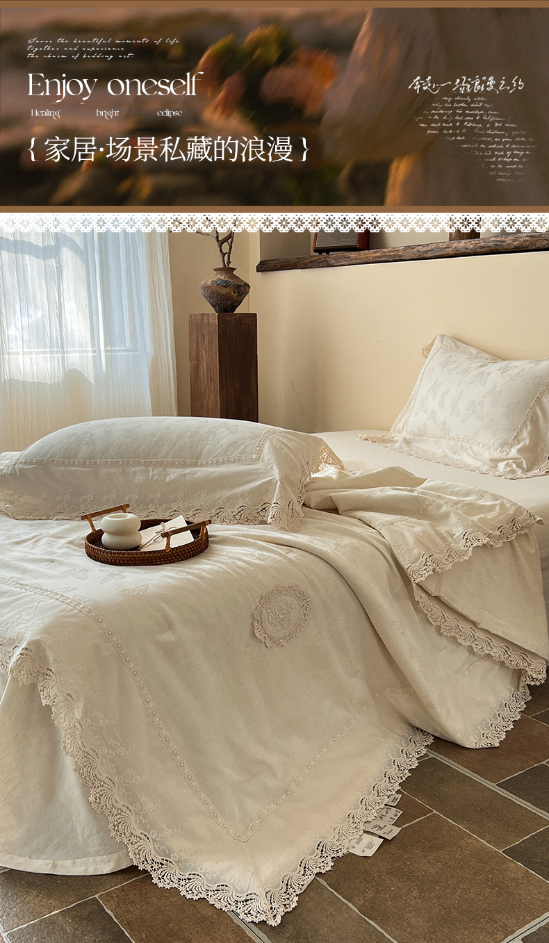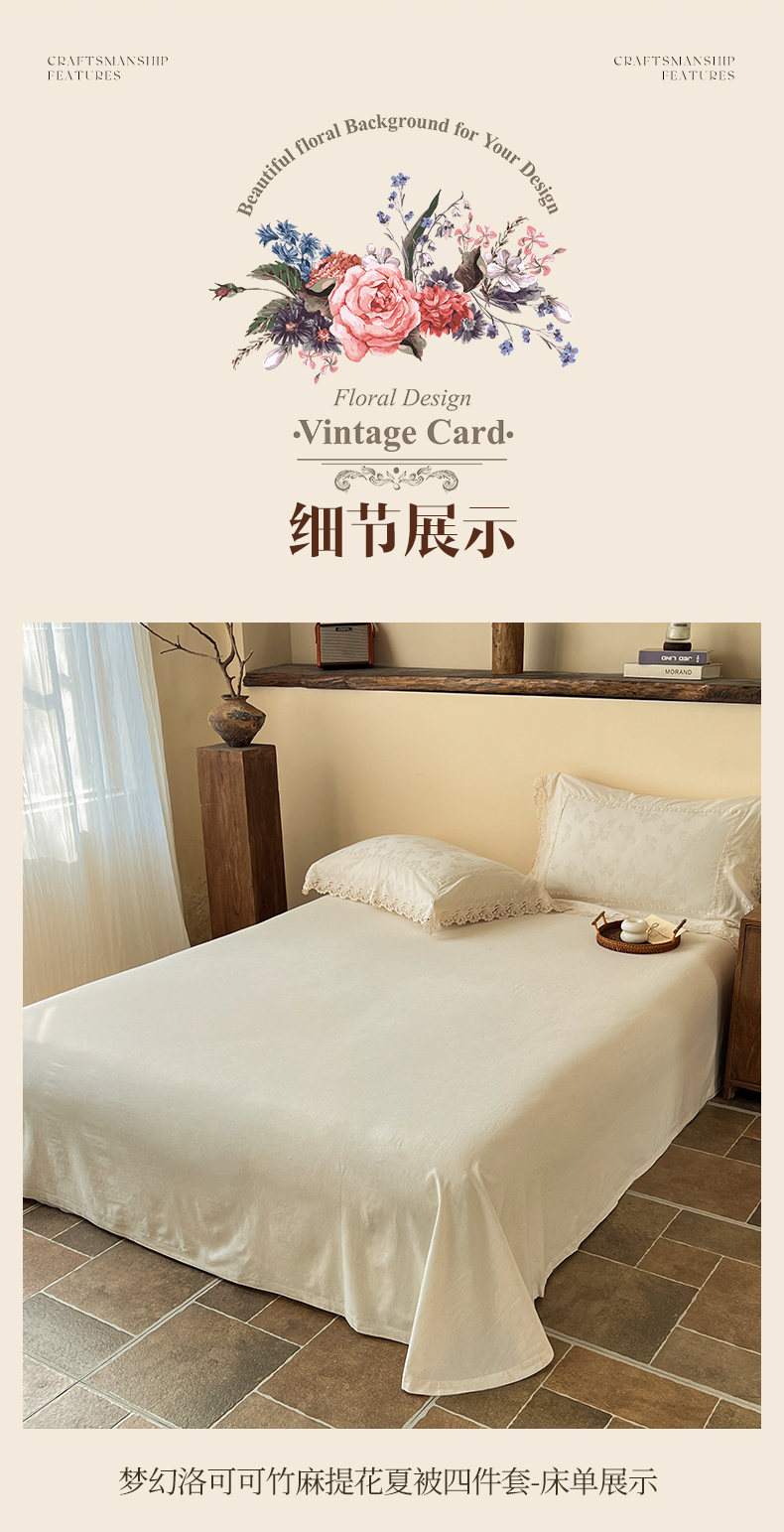 (总)桂雅居 2025新款舒适麻棉麻蕾丝花边单床盖床盖单件,海棠红,栗壳色,麻本色,烟墨灰,组合图仅供展示不可下单,手拎袋包装,清婉花语-灰,秋意-红,素锦-咖