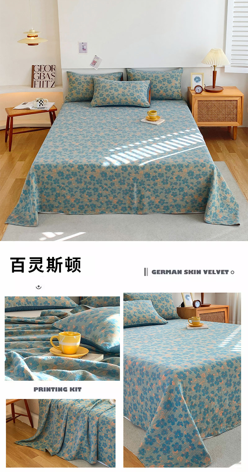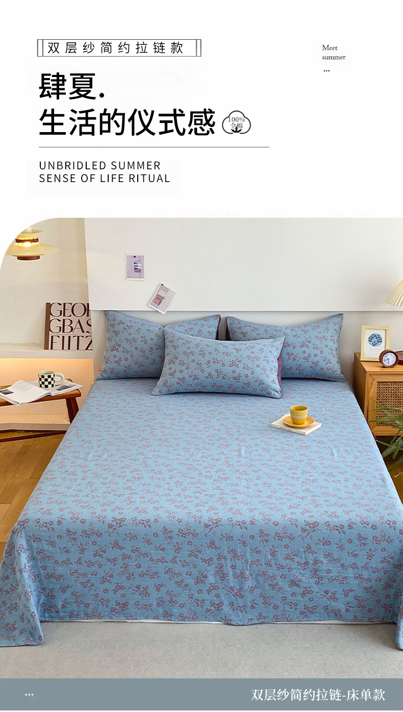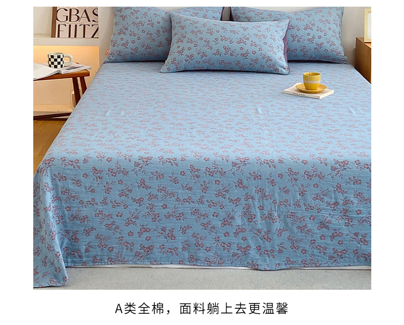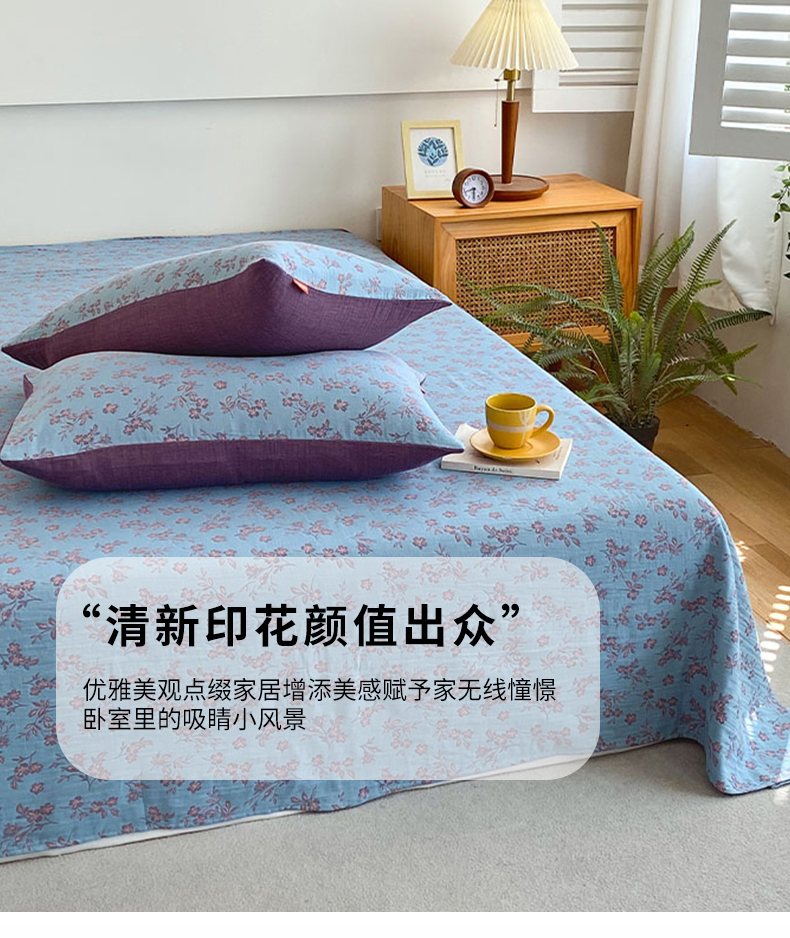 • 91家纺网 家纺一手货源 找家纺 春皖家纺 2026新款全棉纯棉拉链款双层纱床单单床单床单单件 花漾兰