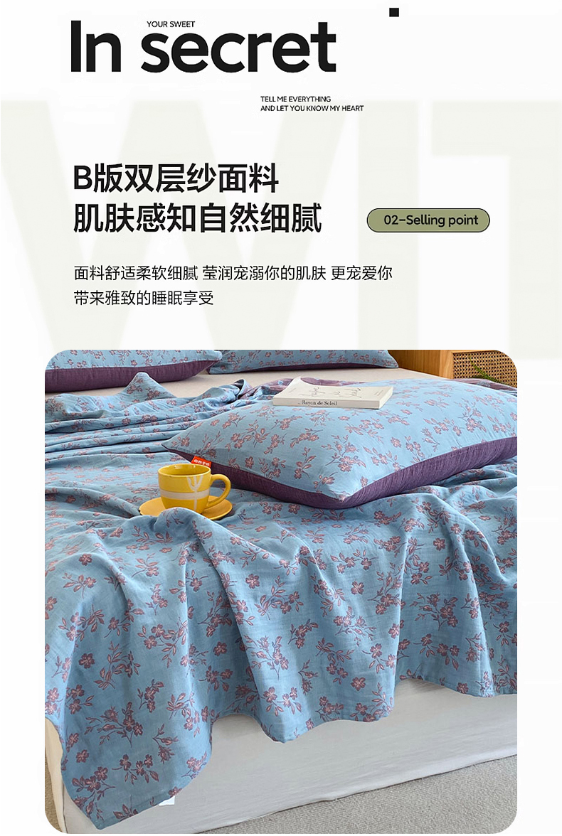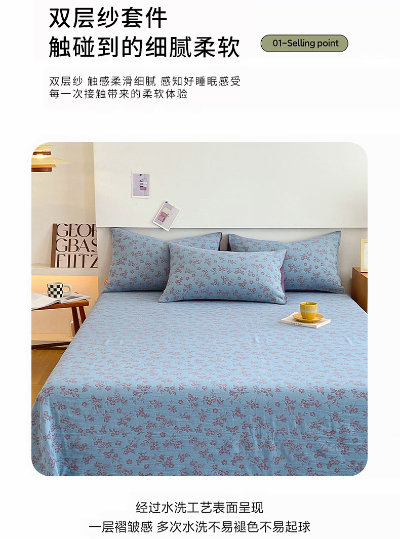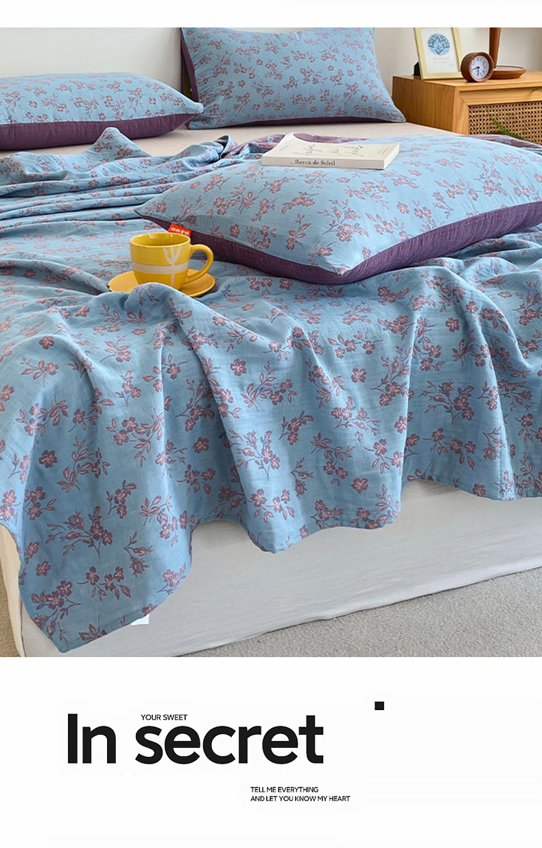 • 91家纺网 家纺一手货源 找家纺 春皖家纺 2026新款全棉纯棉拉链款双层纱床单单床单床单单件 花漾兰