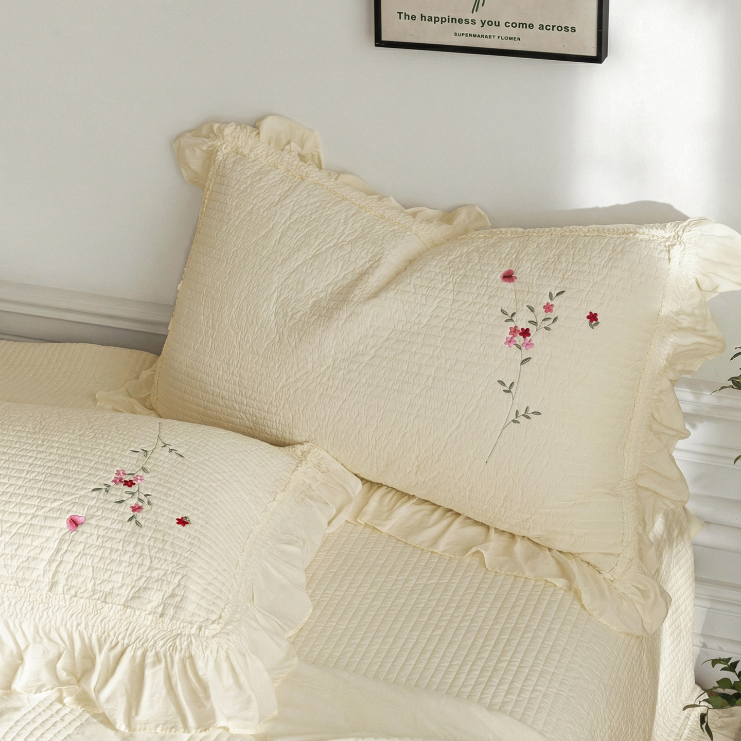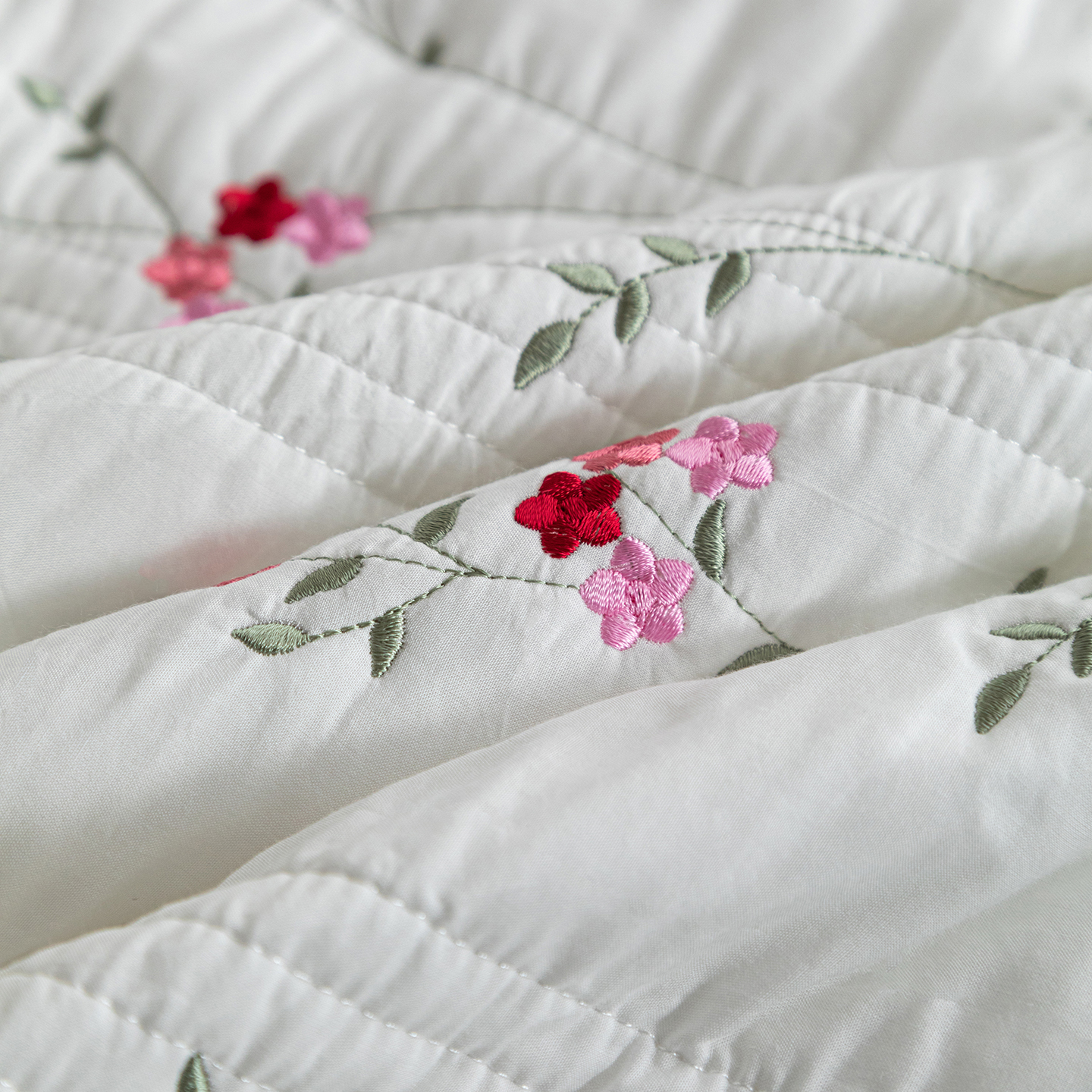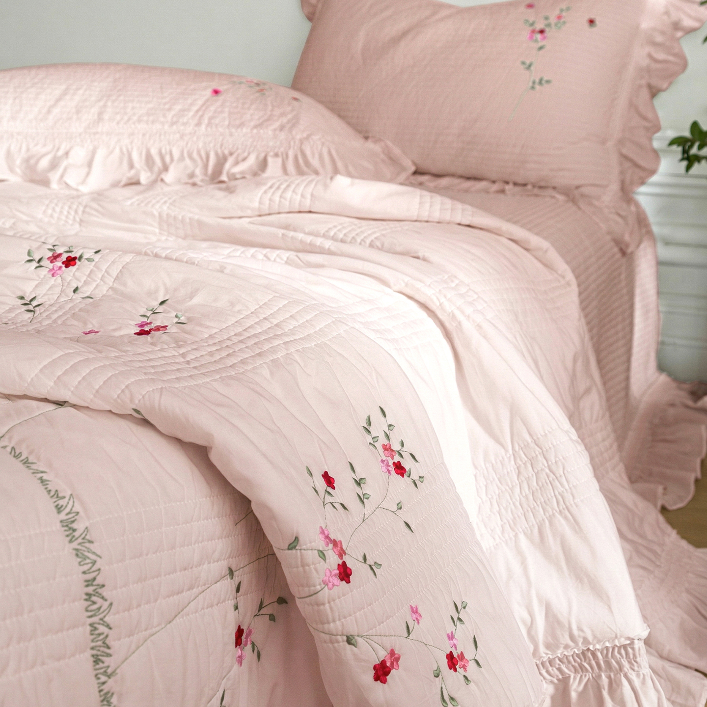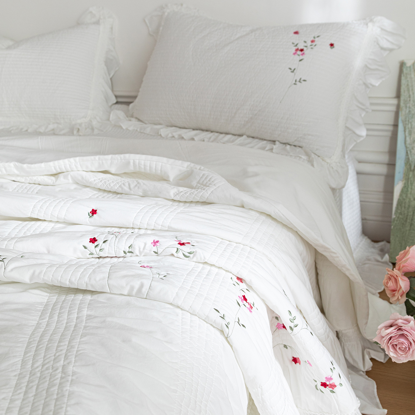 (总)上喜 2026新款棉麻小花刺绣款床盖多功能被子系列,麻本色,麻粉色