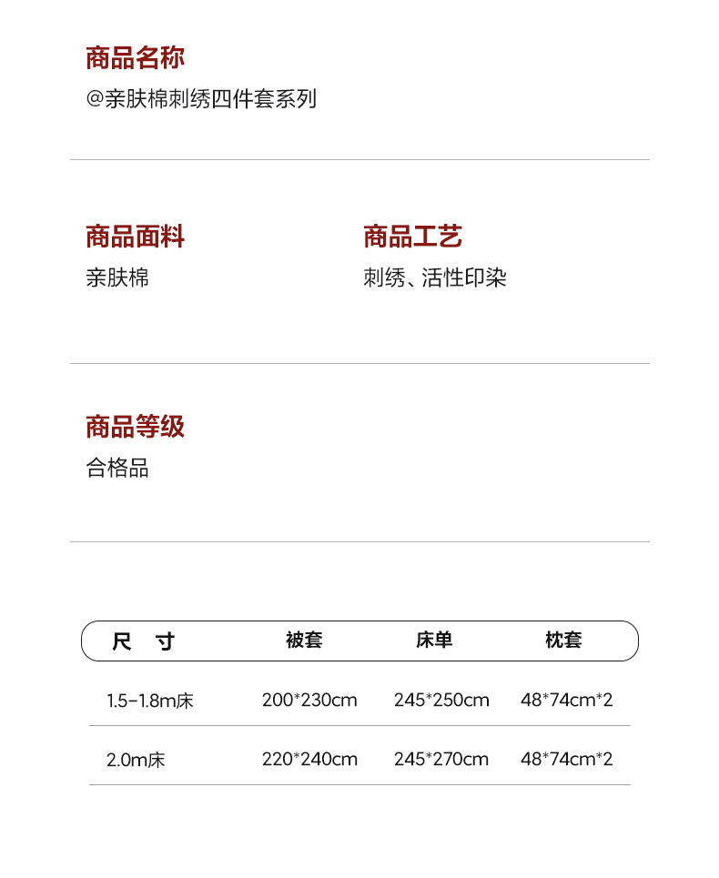 【床单款】2.0四件套-被套220x240 | ¥135.00 |