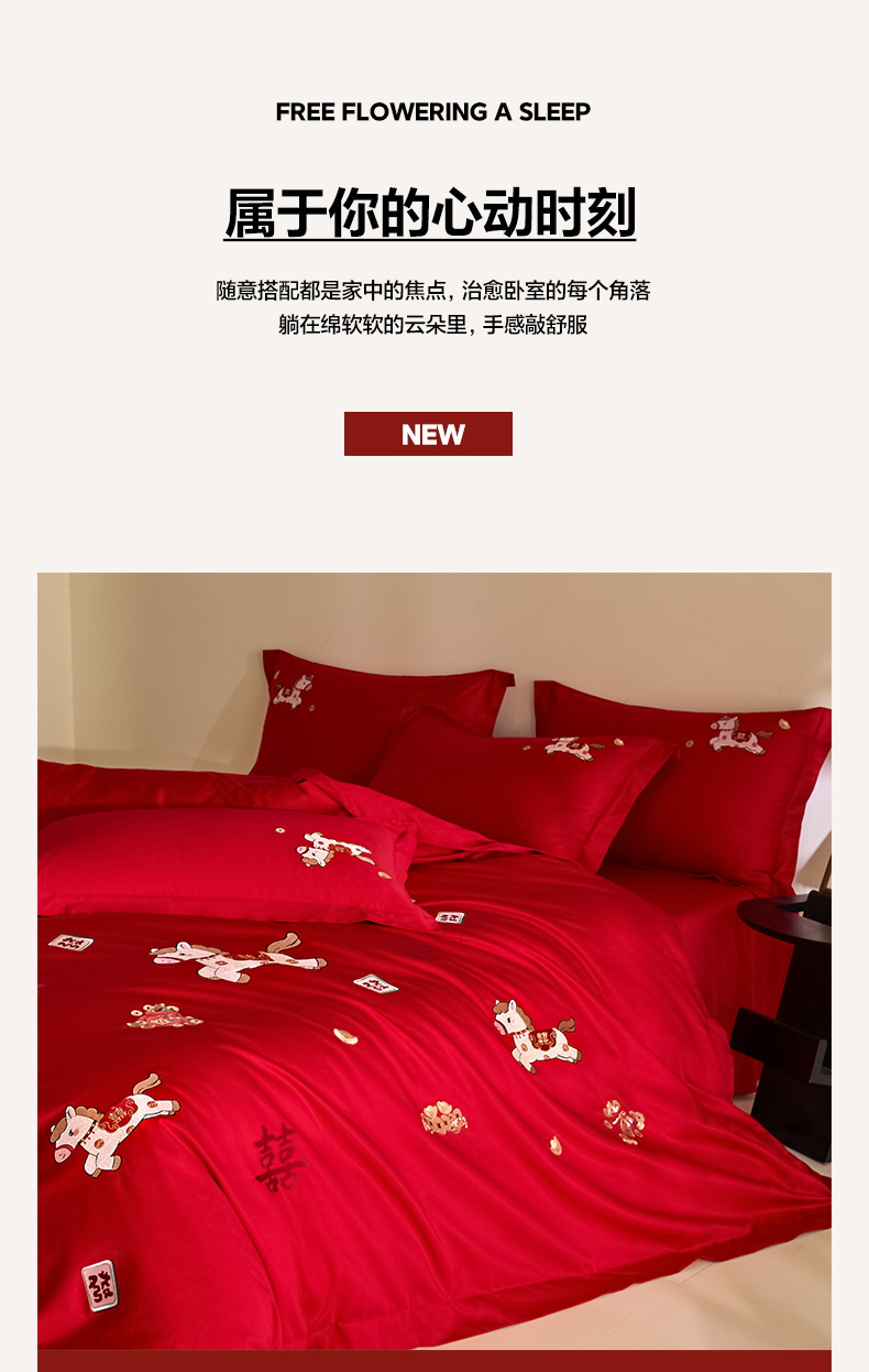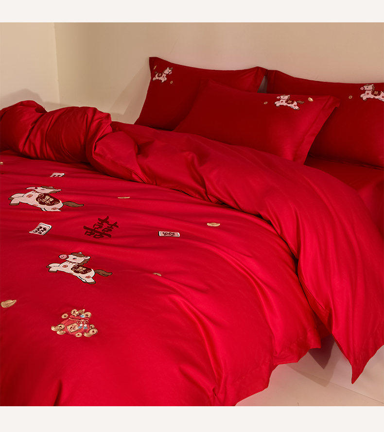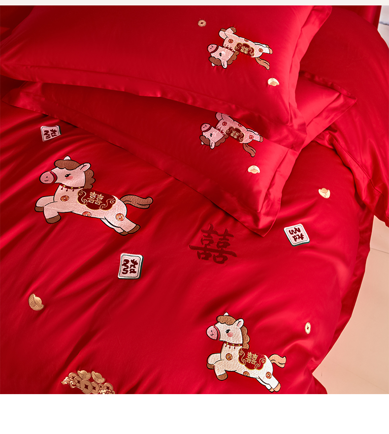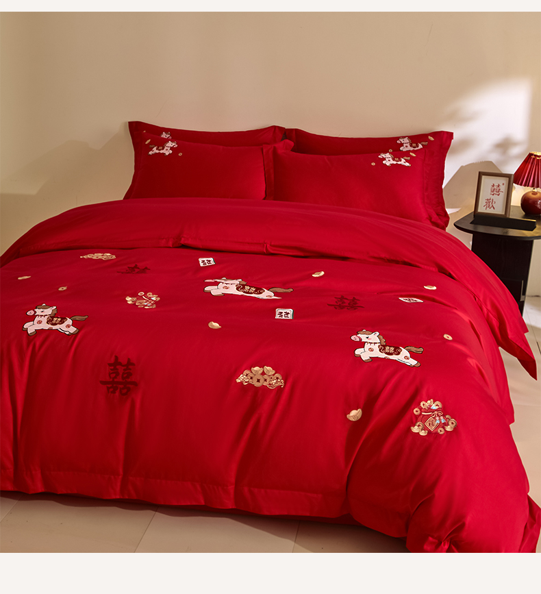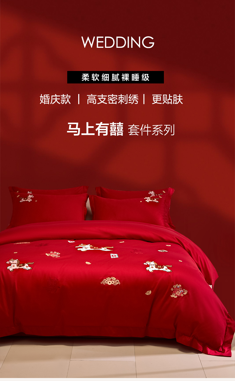 当前位置: 91家纺网 > 商品网购 > 床品套件 > 四件套 > 婚庆四件套 > (总)欧乐蒂 2026新款亲肤棉刺绣婚庆四件套-马上有喜