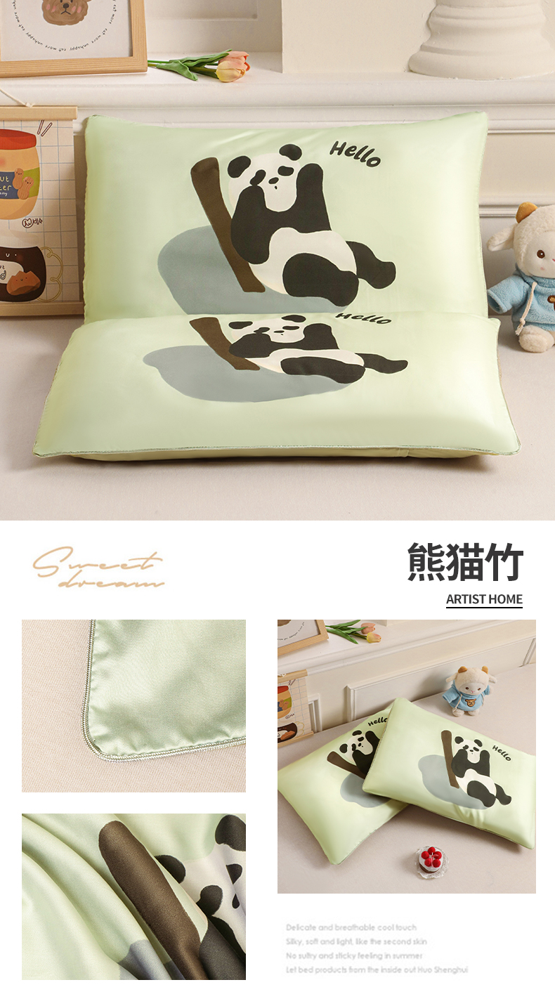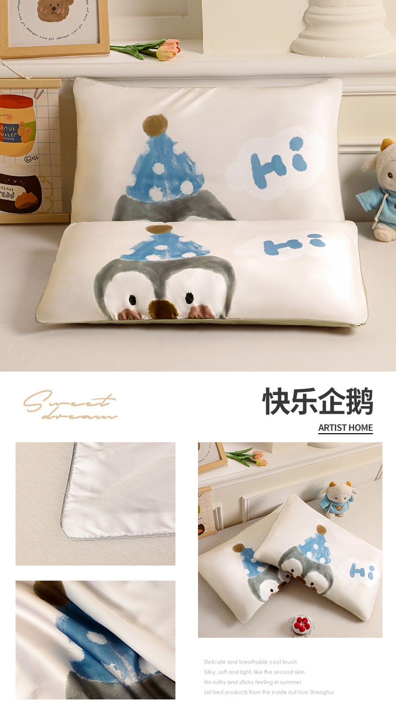 商品名称:布凡家居 2026新款A类60支莱赛尔天丝枕套 枕套单件 快乐企鹅
