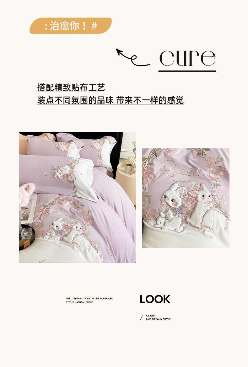 当前位置: 91家纺网 > 商品网购 > 床品套件 > 四件套 > 全棉普通四件套 > 爱妮菲家纺 2026爆款新品少女心A类100支长绒棉纯棉四件套全棉刺绣兔子被套床单床笠公主风 月汐兔-黛紫