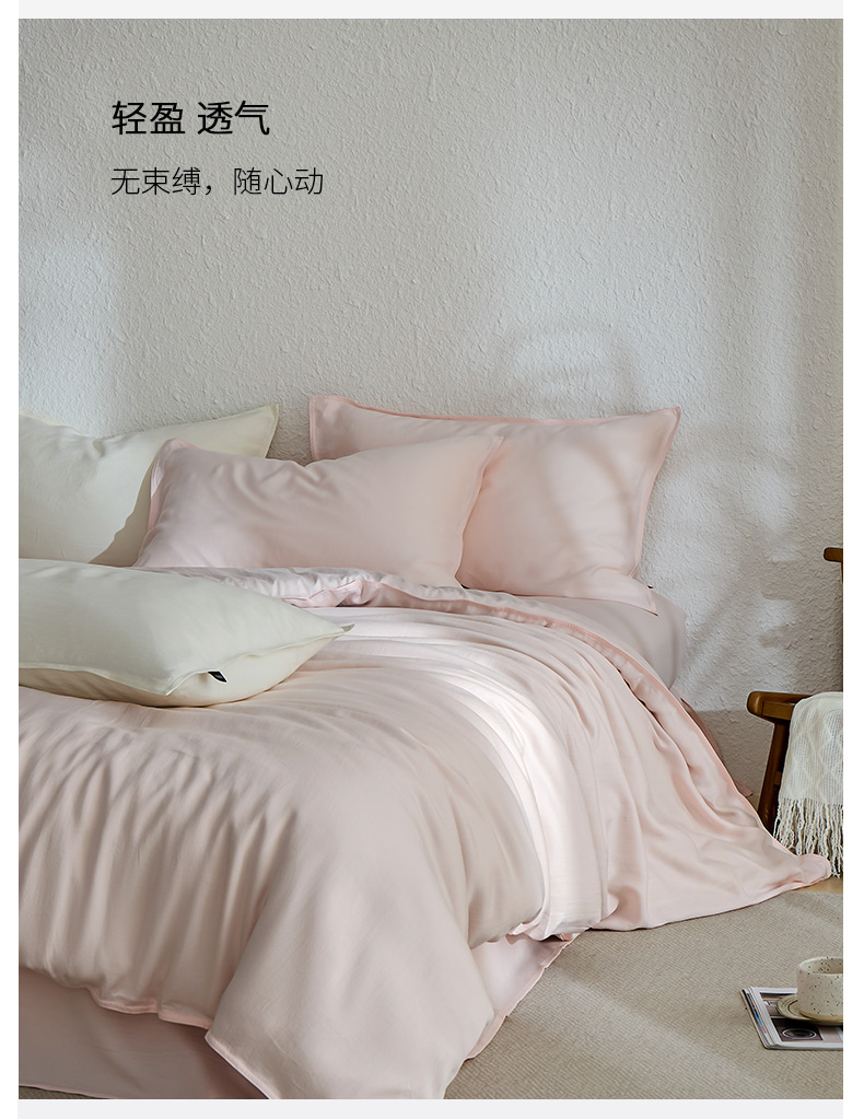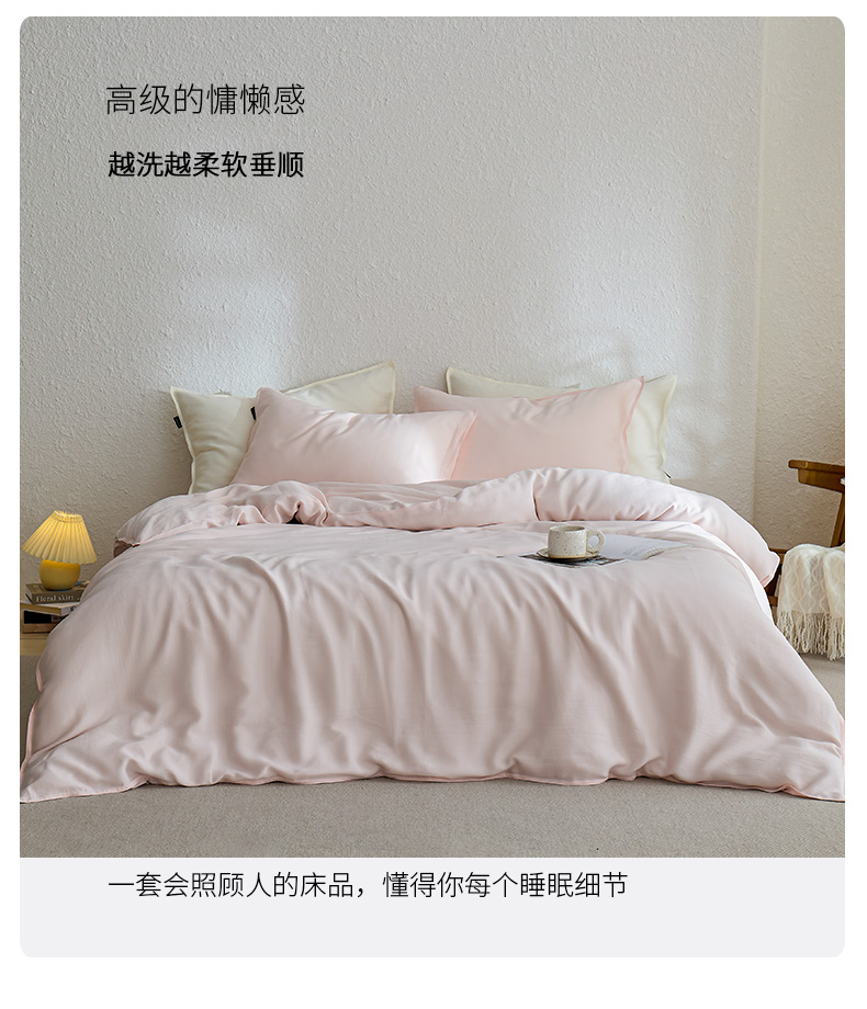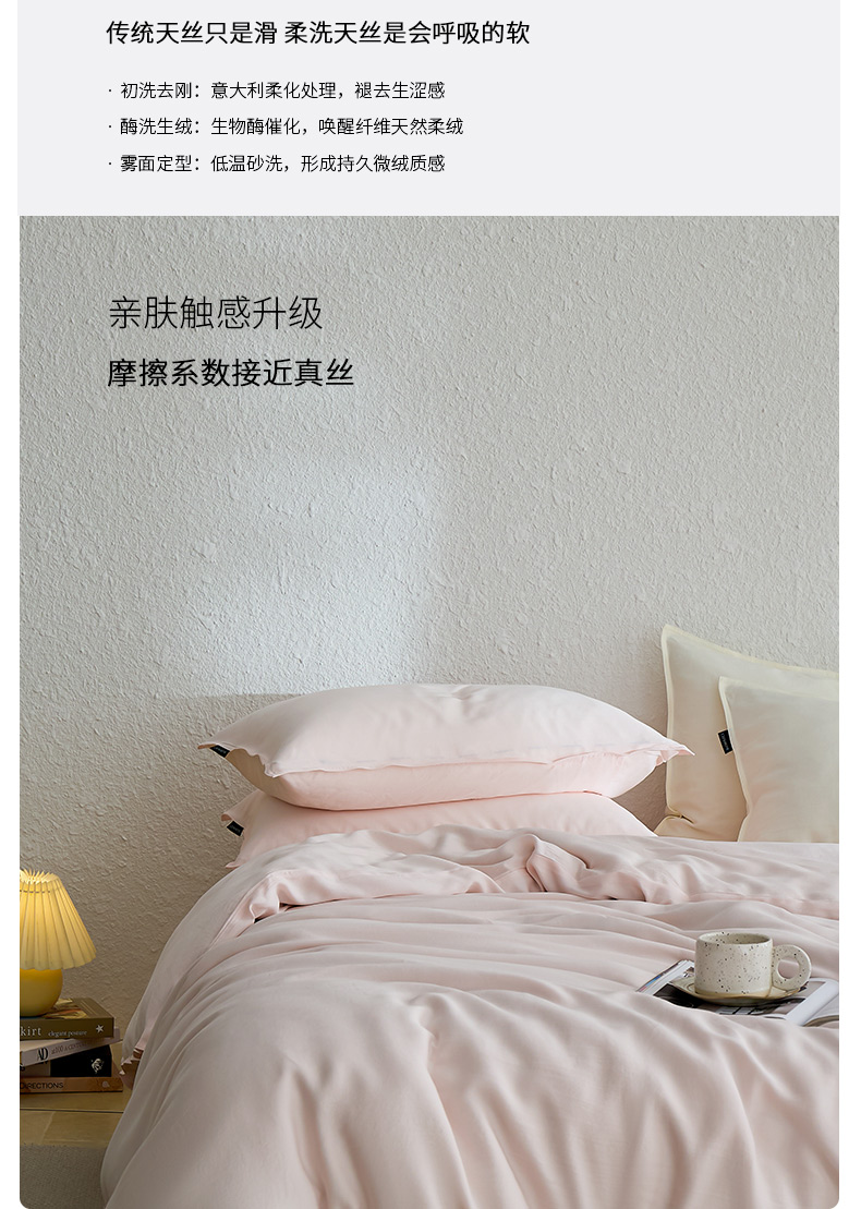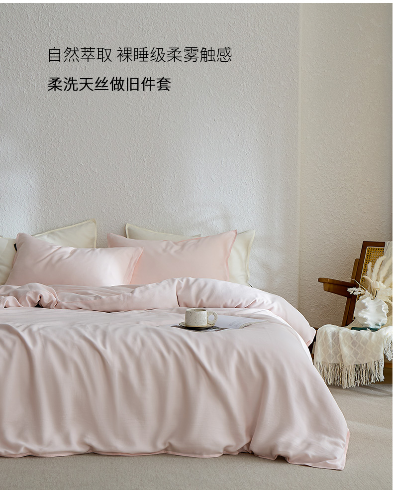 禧禾 2026新款60支兰精天丝柔洗做旧四件套序禾 序禾-奶昔粉