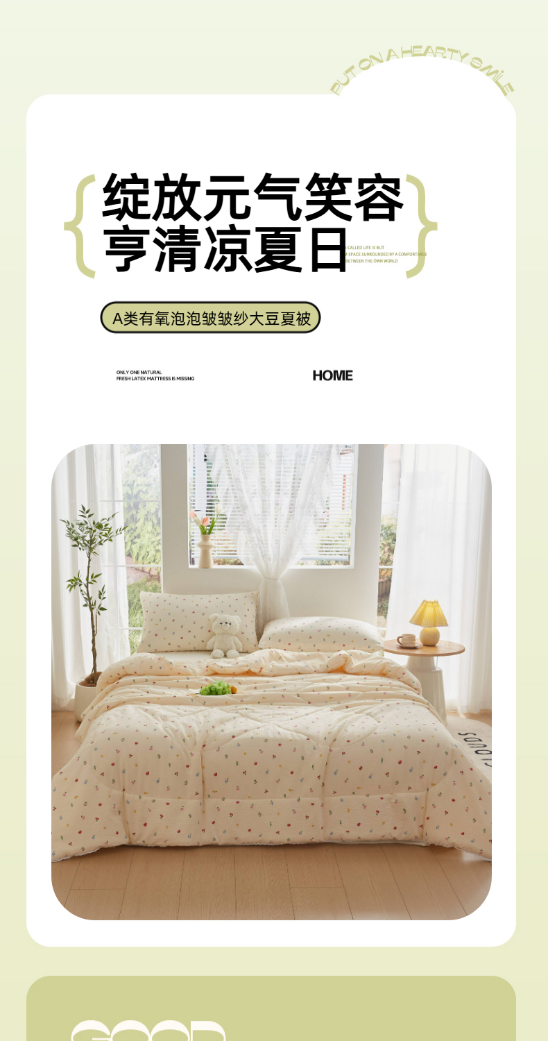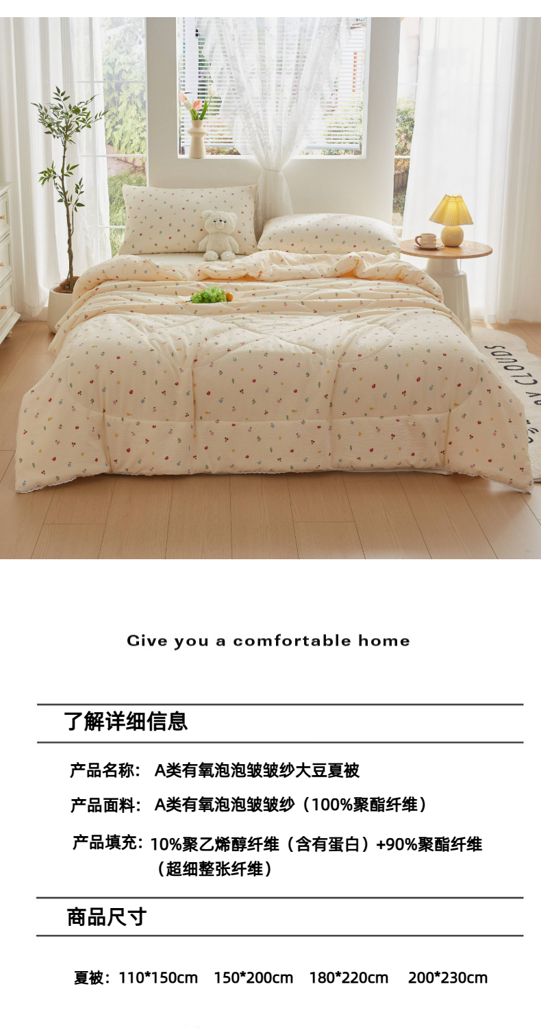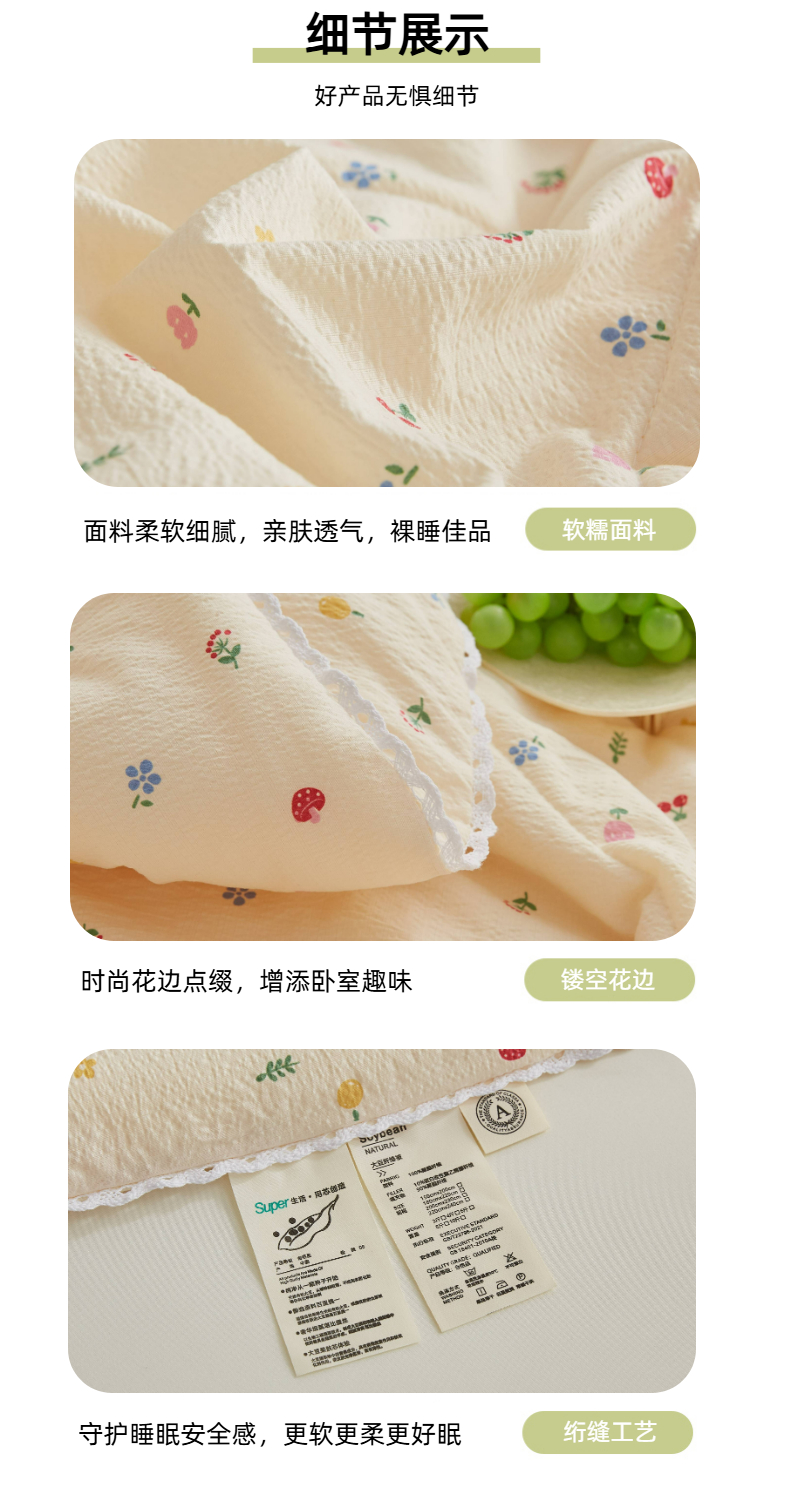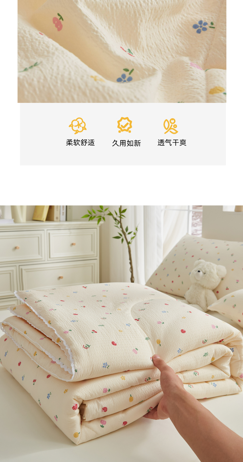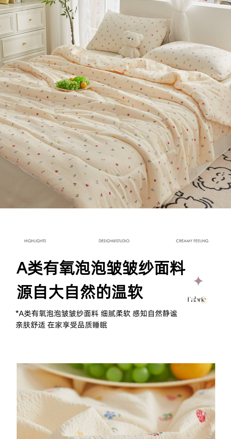 商品名称:帕芬鸟家纺 2026春夏新款双层皱皱纱水洗棉大豆夏被夏凉被空调被 莓果森林