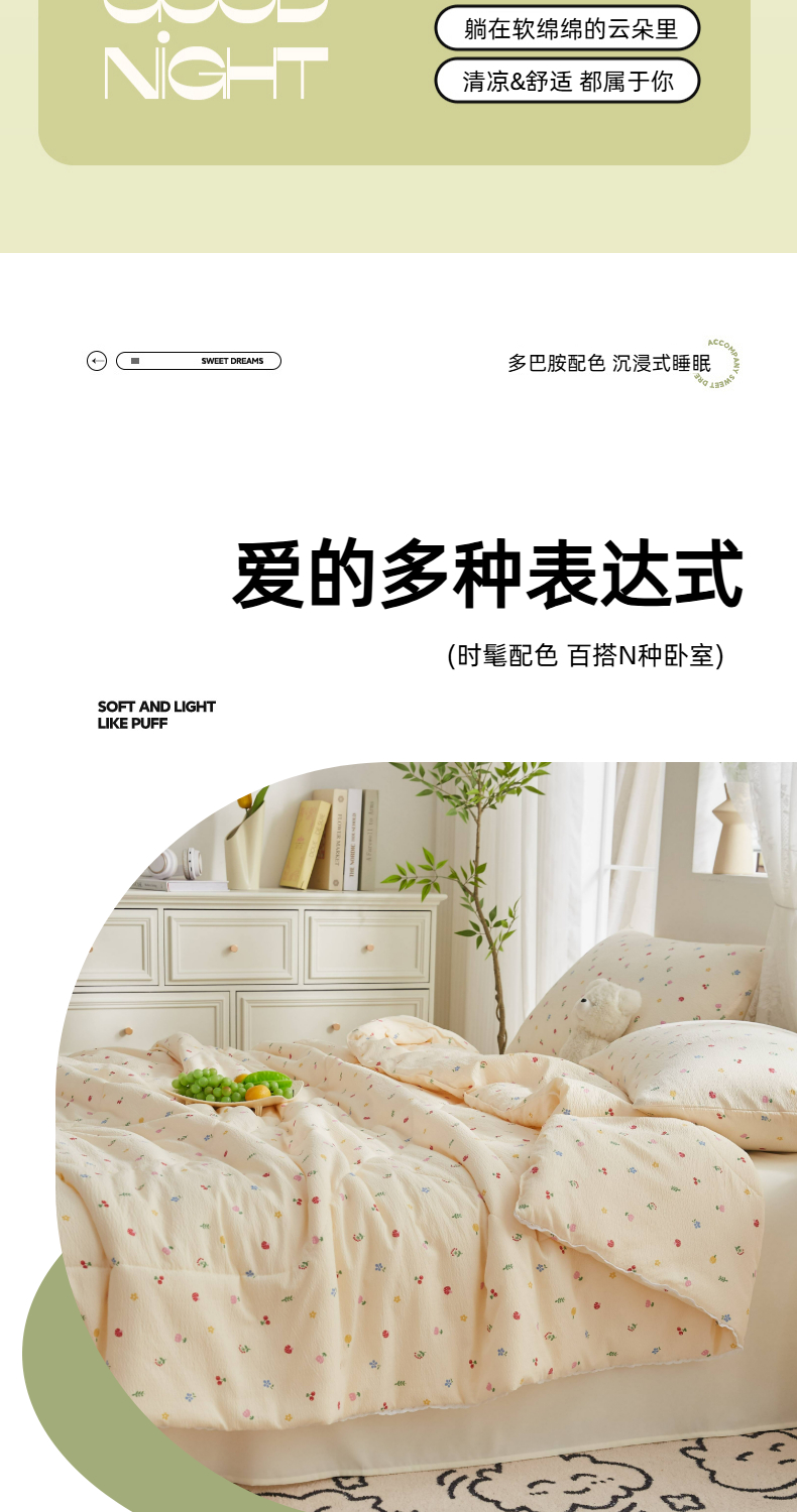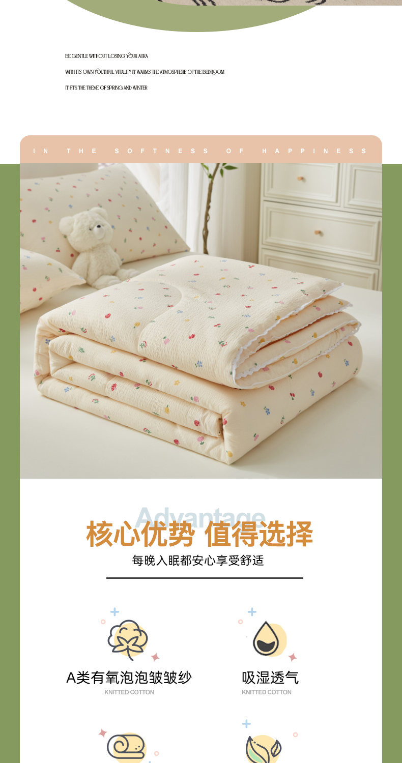 (总)帕芬鸟家纺 2026春夏新款双层皱皱纱水洗棉大豆夏被夏凉被空调被,爱心樱桃,花海,花间蜜语,花间小熊,花漾,恐龙谷,莓果森林,森林兔,晚安熊,小确幸