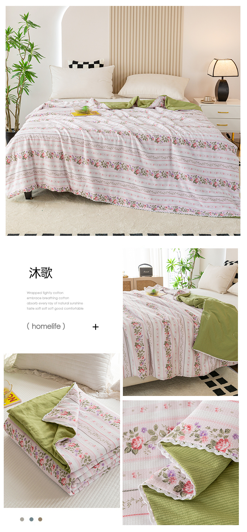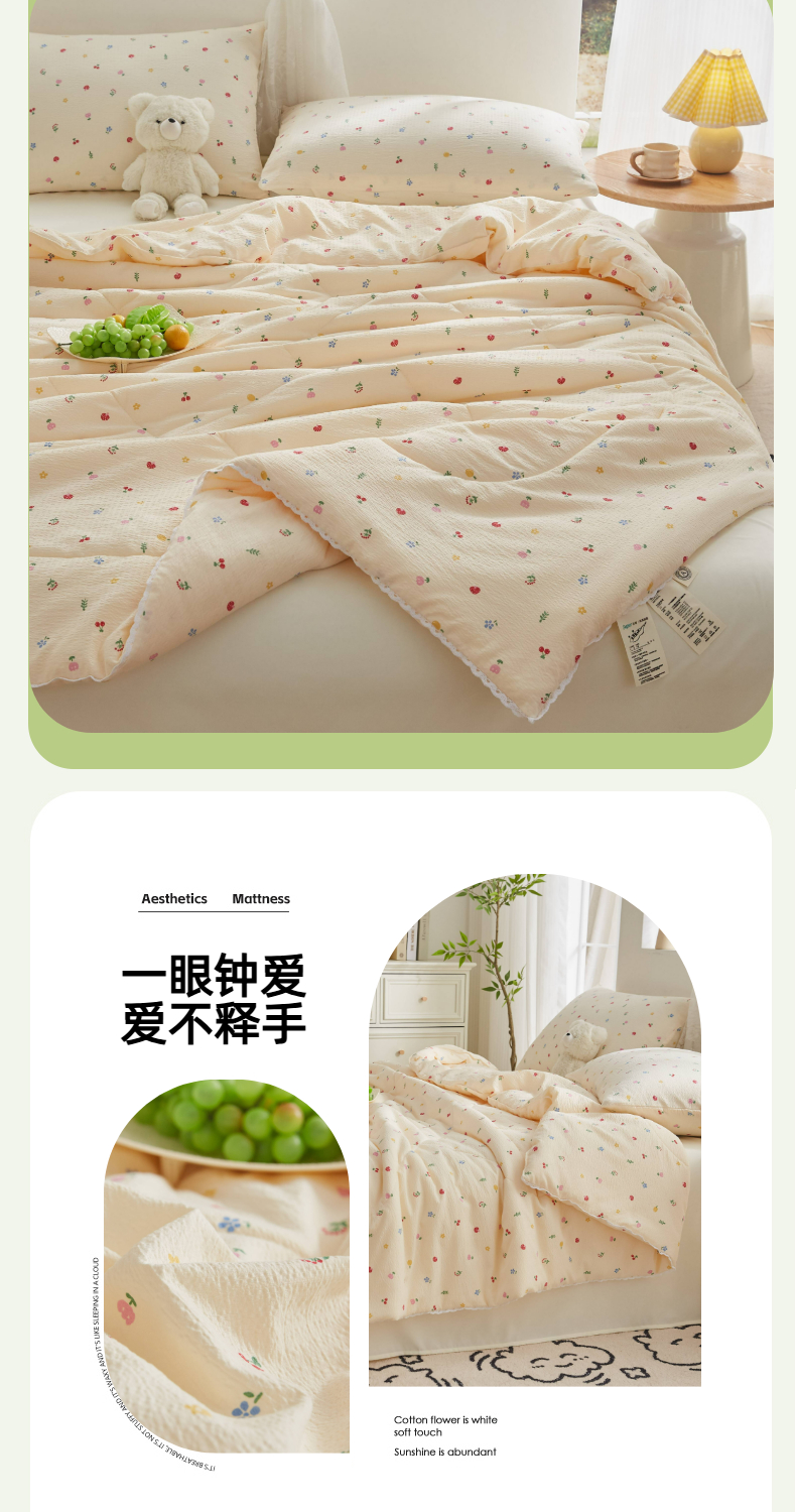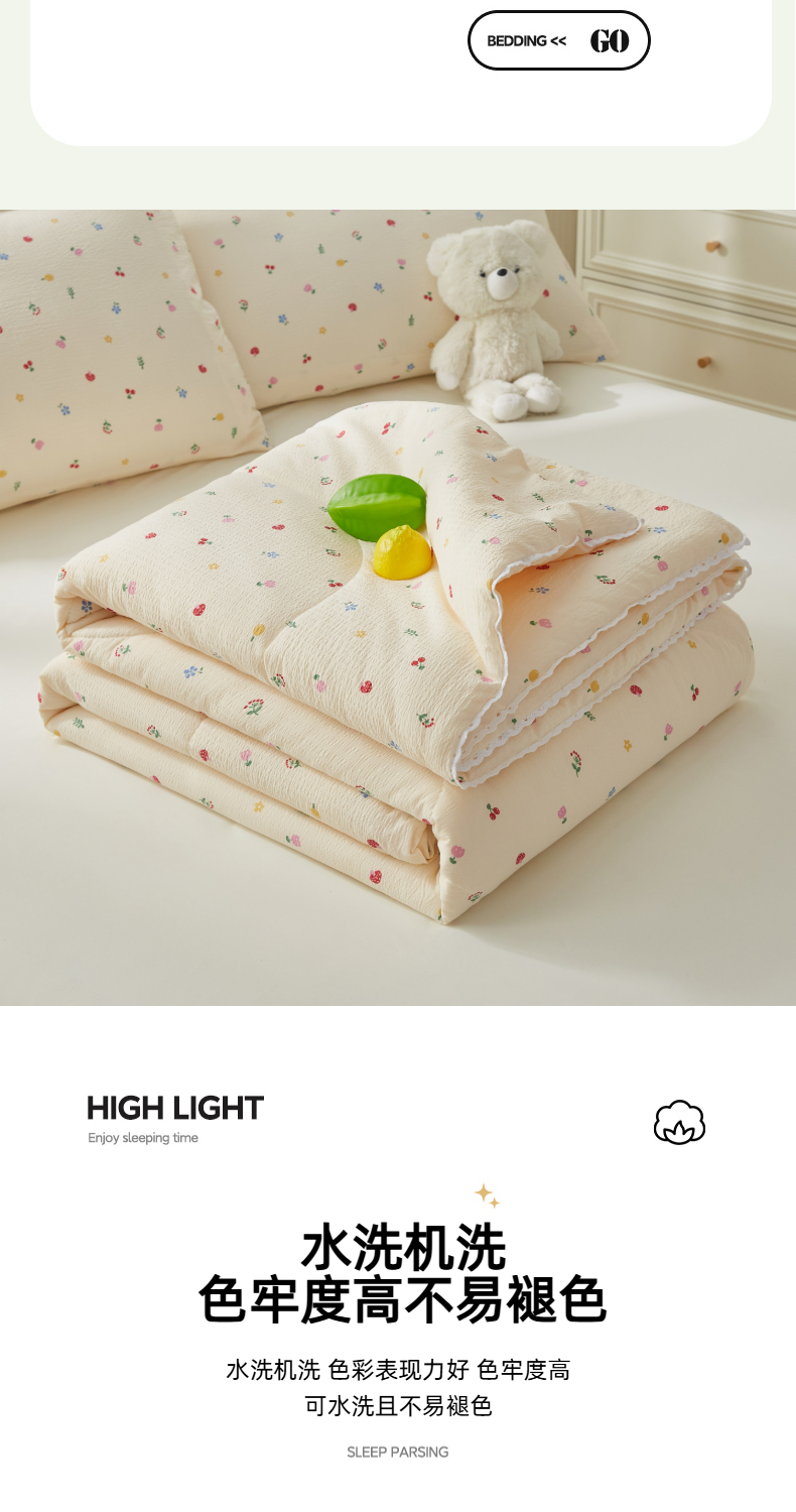 帕芬鸟家纺 2026春夏新款双层皱皱纱水洗棉大豆夏被夏凉被空调被 莓果森林