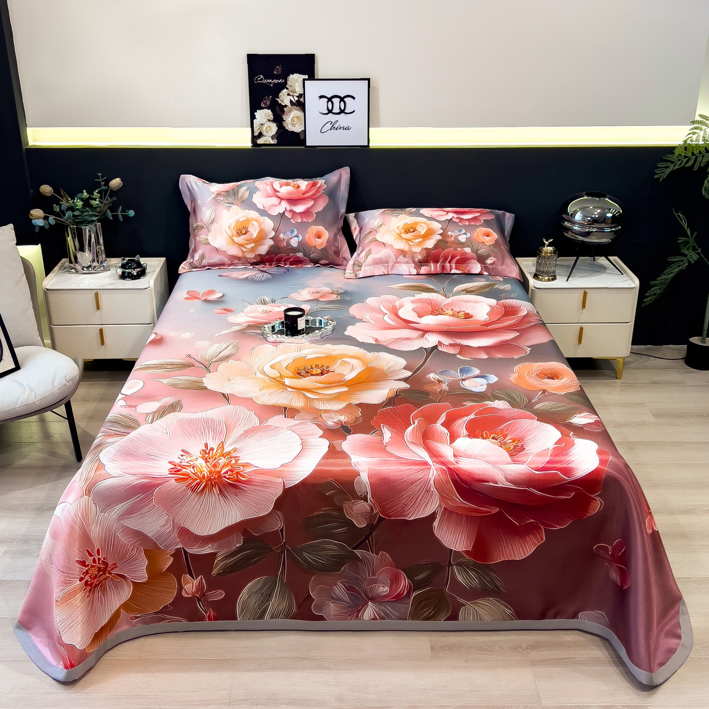 (总)梵克保罗 2026春夏新款数码印花大版高克重冰丝凉席三件套,花楹,孔雀,绿野晴风,曼陀罗,牡丹,浅朵,四季花,夏木,星空幻想