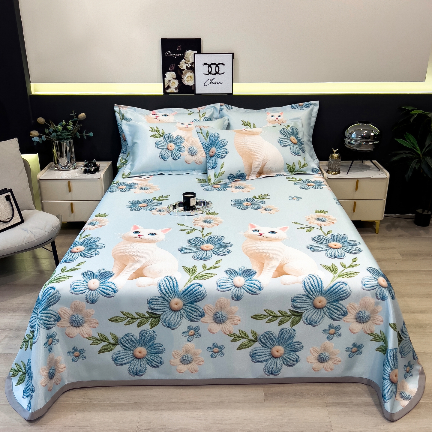 商品名称:梵克保罗 2026春夏新款凉感冰丝凉席床单款凉席三件套 野莓