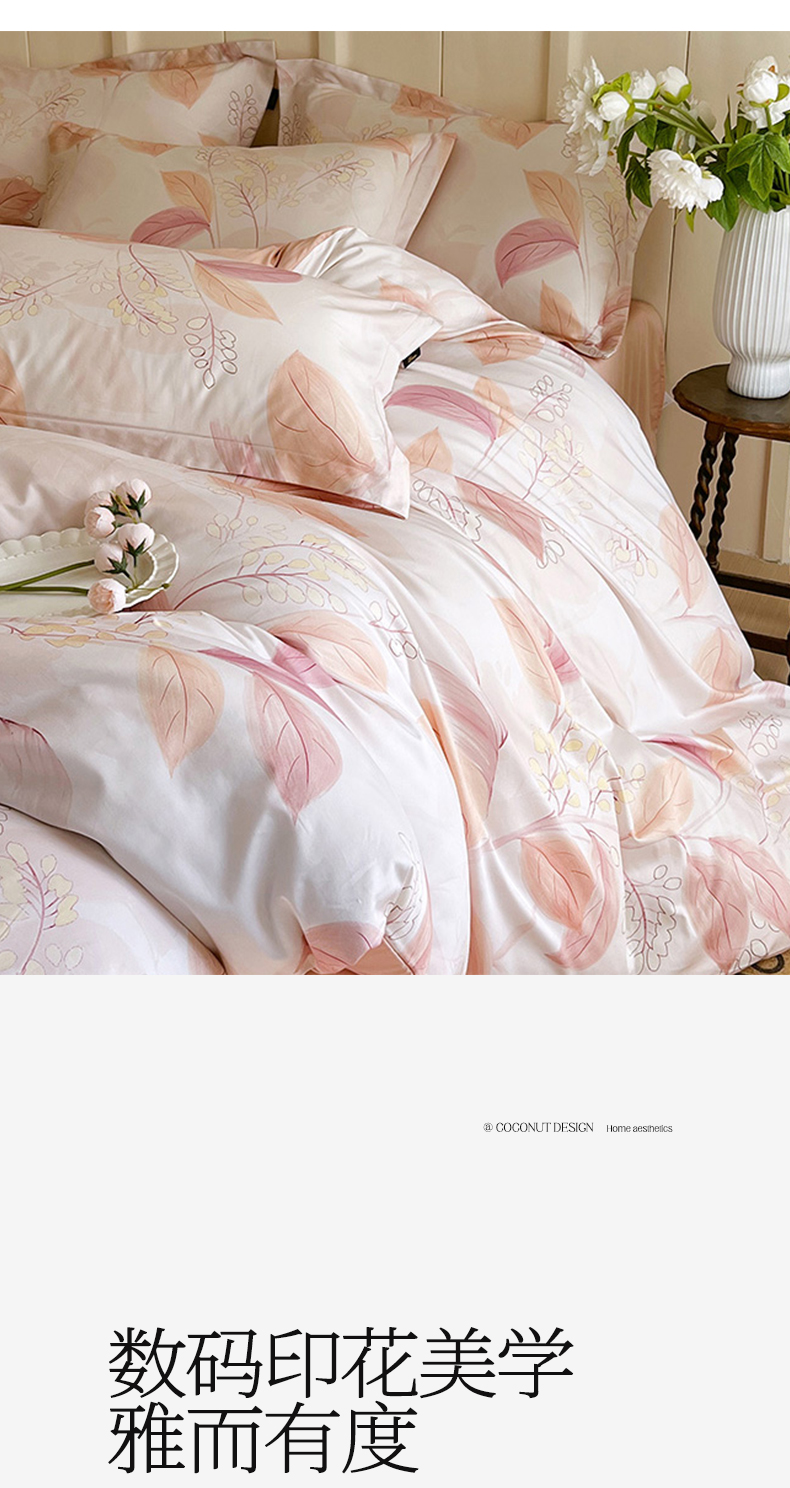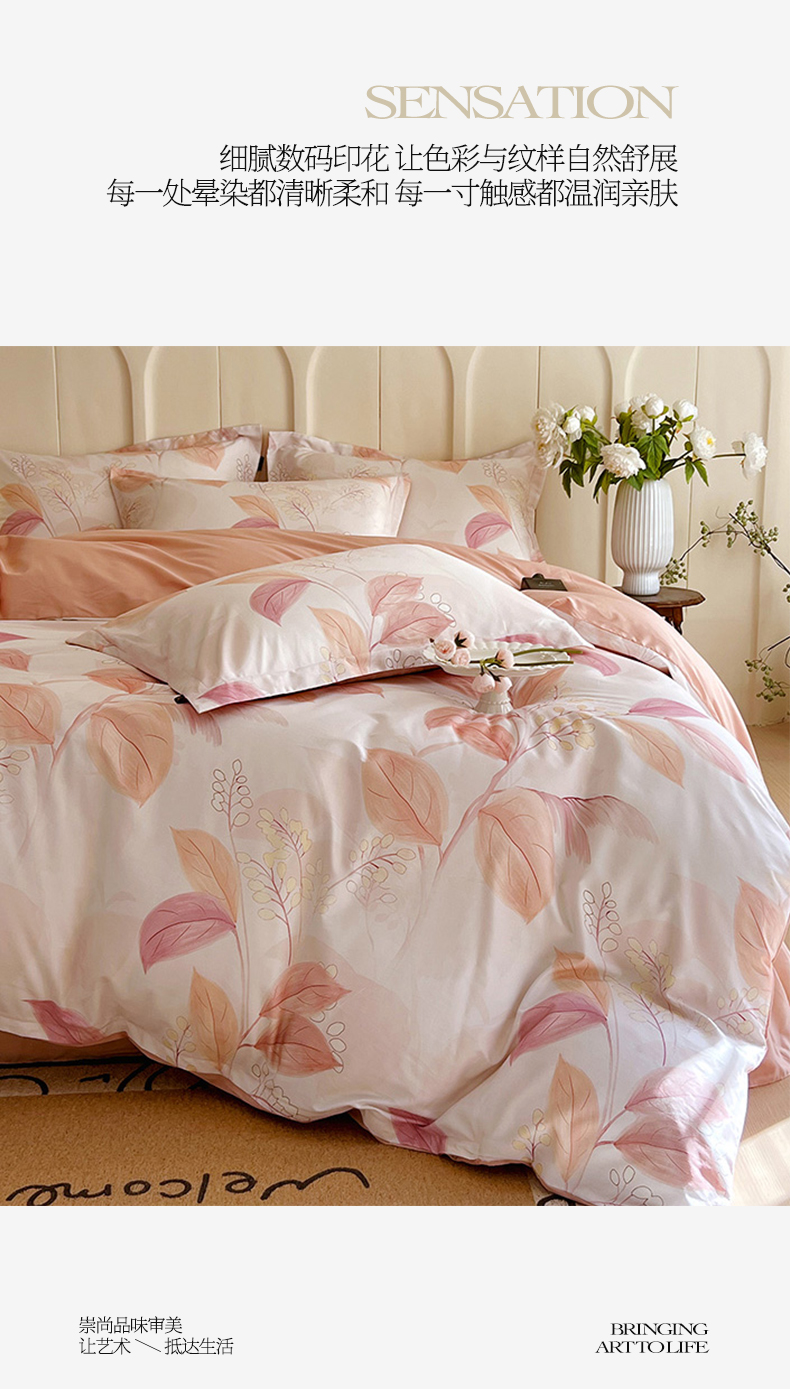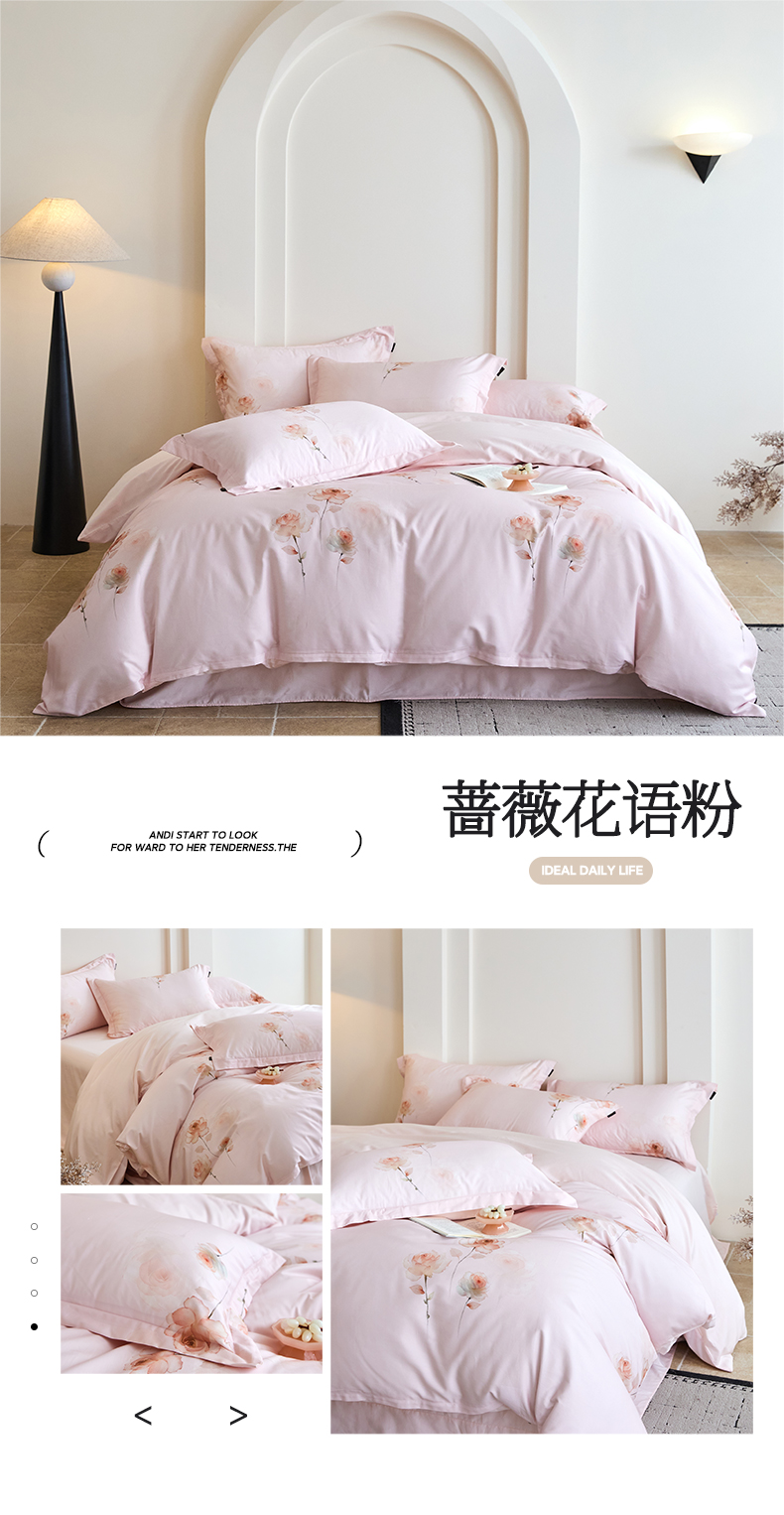 商品名称:帅露家纺 2026新款全棉60支长绒棉数码印花四件套 悦妍-粉
