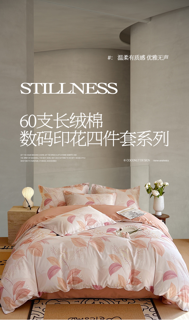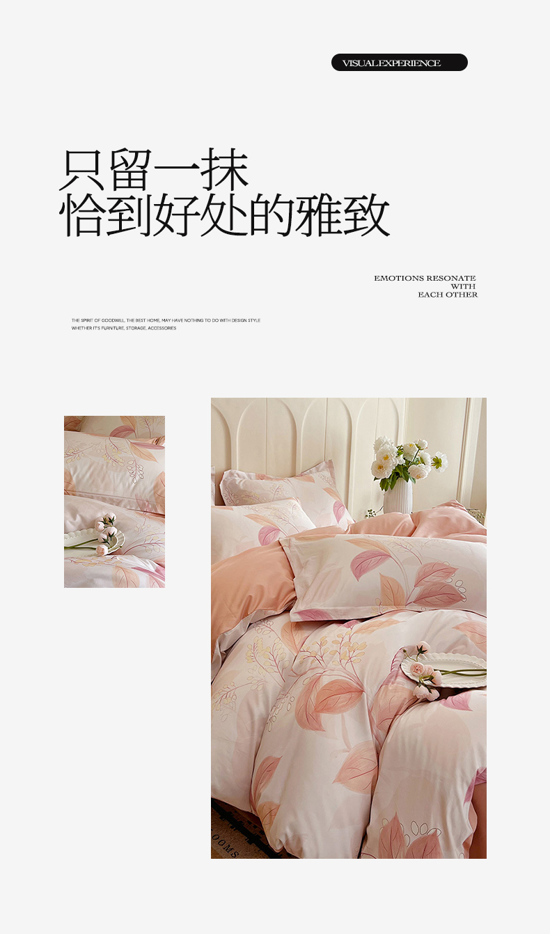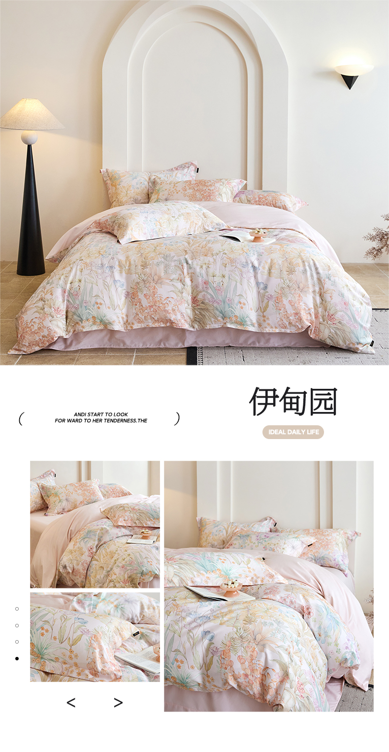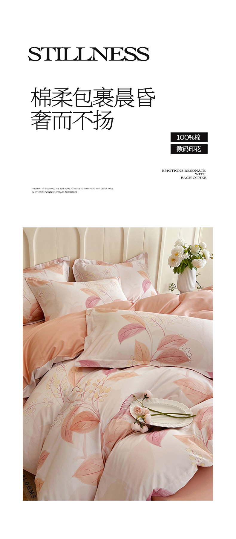 商品名称:帅露家纺 2026新款全棉60支长绒棉数码印花四件套 悦妍-粉