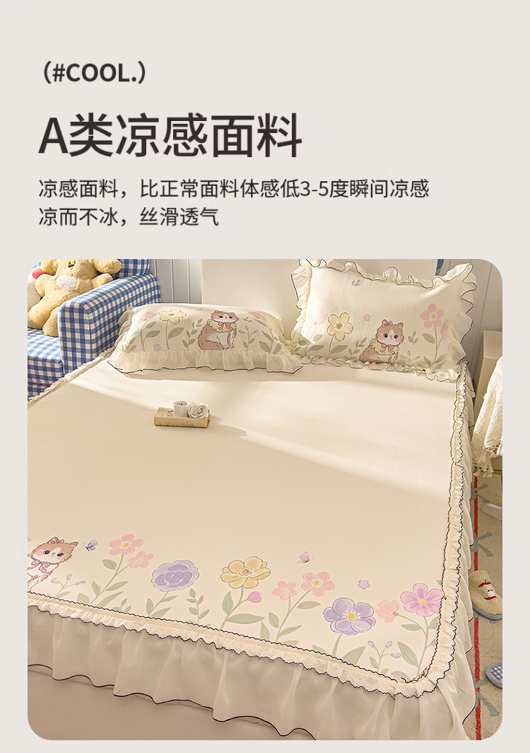 商品名称:川悦生活 2026新款凉豆豆凉感冰丝床裙三件套 软芙花眠